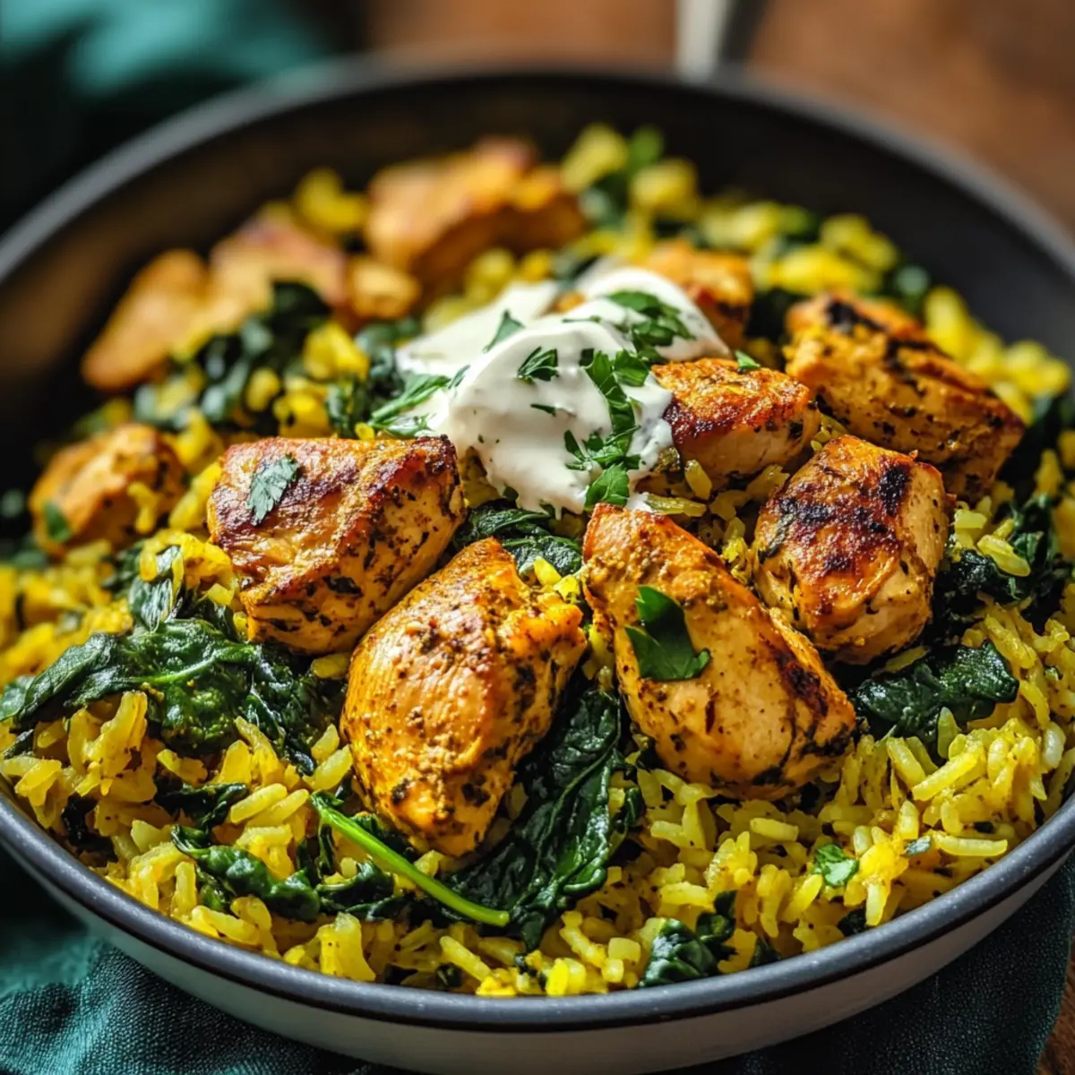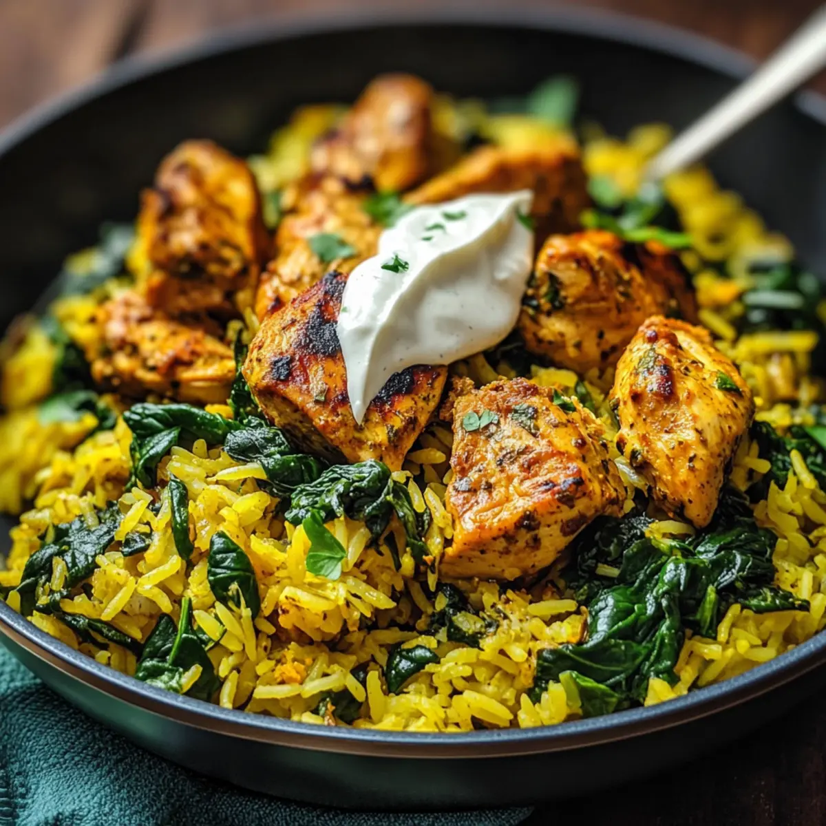 The vibrant aroma of turmeric wafts through my kitchen, instantly transporting me to a world of warmth and comfort. As I let the spices work their magic, I feel a sense of accomplishment knowing I’m creating a One-Pan Turmeric Chicken and Rice Bowl, a dish that effortlessly combines deliciousness with wholesome nutrition. Perfect for those busy weeknights or post-workout recovery, this anti-inflammatory turmeric chicken & rice recipe is not only quick to prepare but also brimming with antioxidants and high-quality protein. Plus, it packs a hearty punch for meal prep, allowing flavors to deepen over time. Who wouldn’t want to dig into a colorful bowl loaded with tender chicken and vibrant spinach? Trust me, your taste buds will thank you. Are you ready to elevate your weeknight dinners?