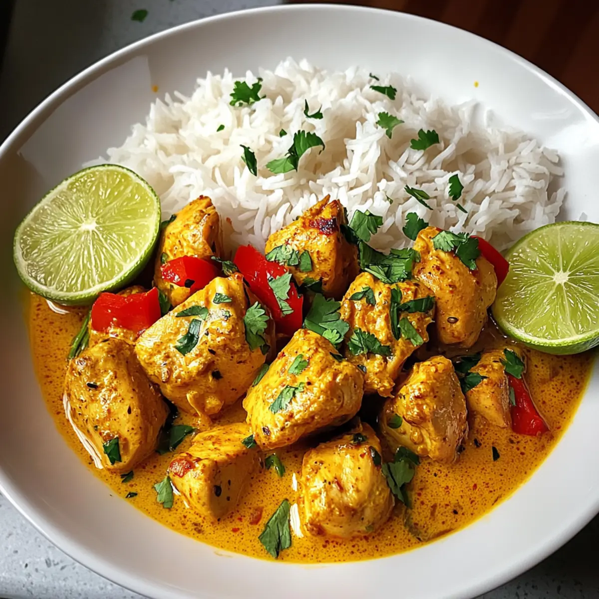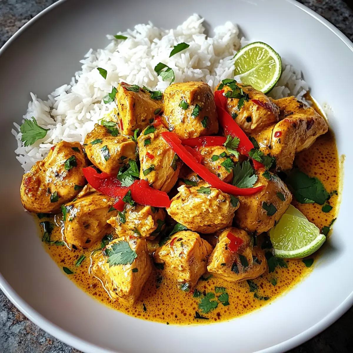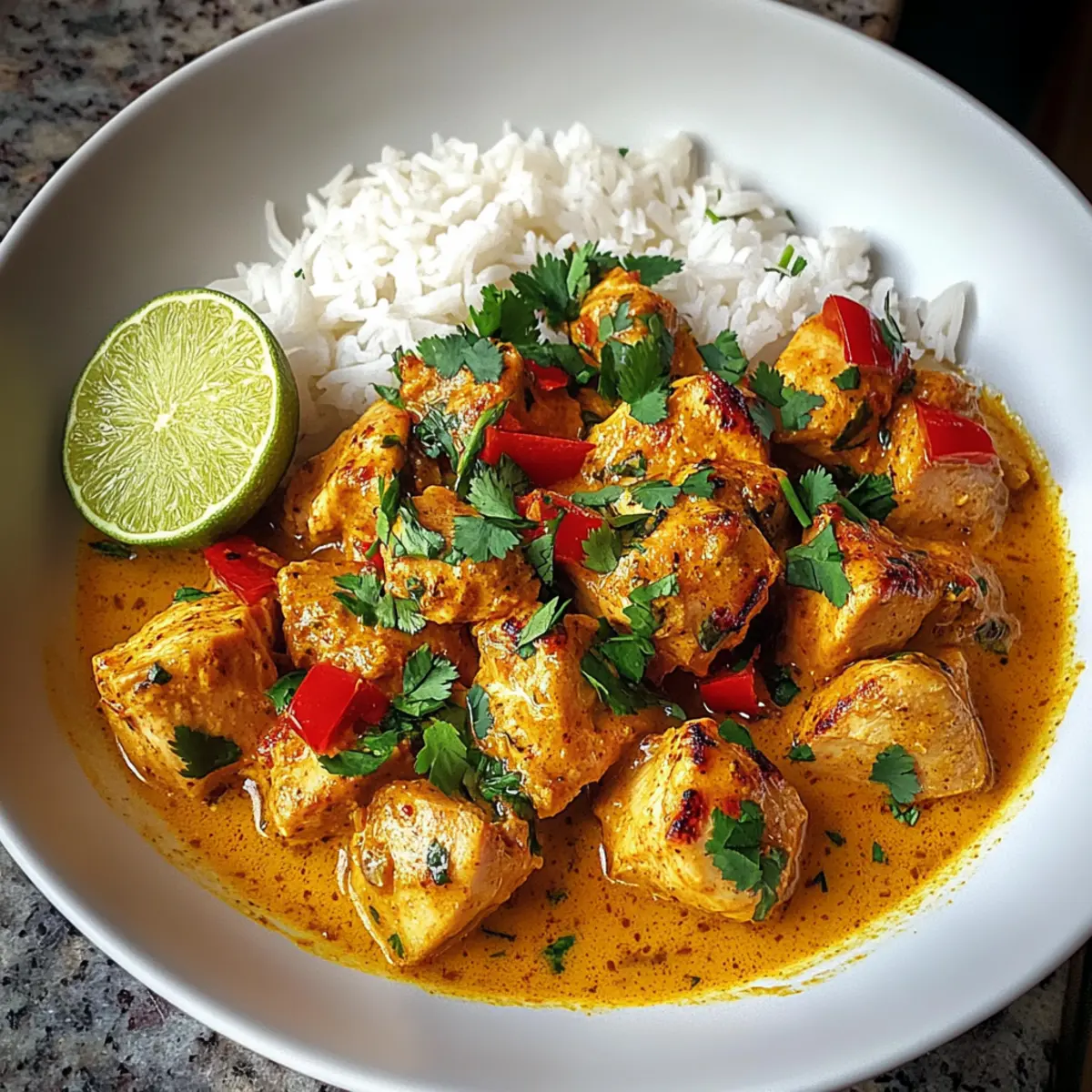 Creamy Delight: The luxurious coconut sauce wraps around juicy chicken, creating a dish that combines tropical flair with cozy familiarity.