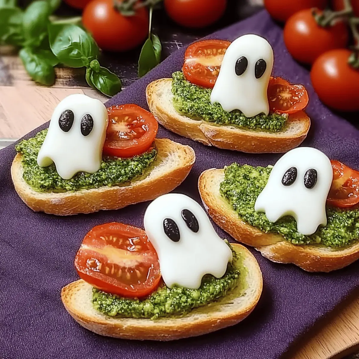 - Flavorful Variations: Don’t hesitate to swap the pesto for sun-dried tomato pesto or add herbs like fresh basil to enhance the flavor of your Caprese Crostini Ghosts.