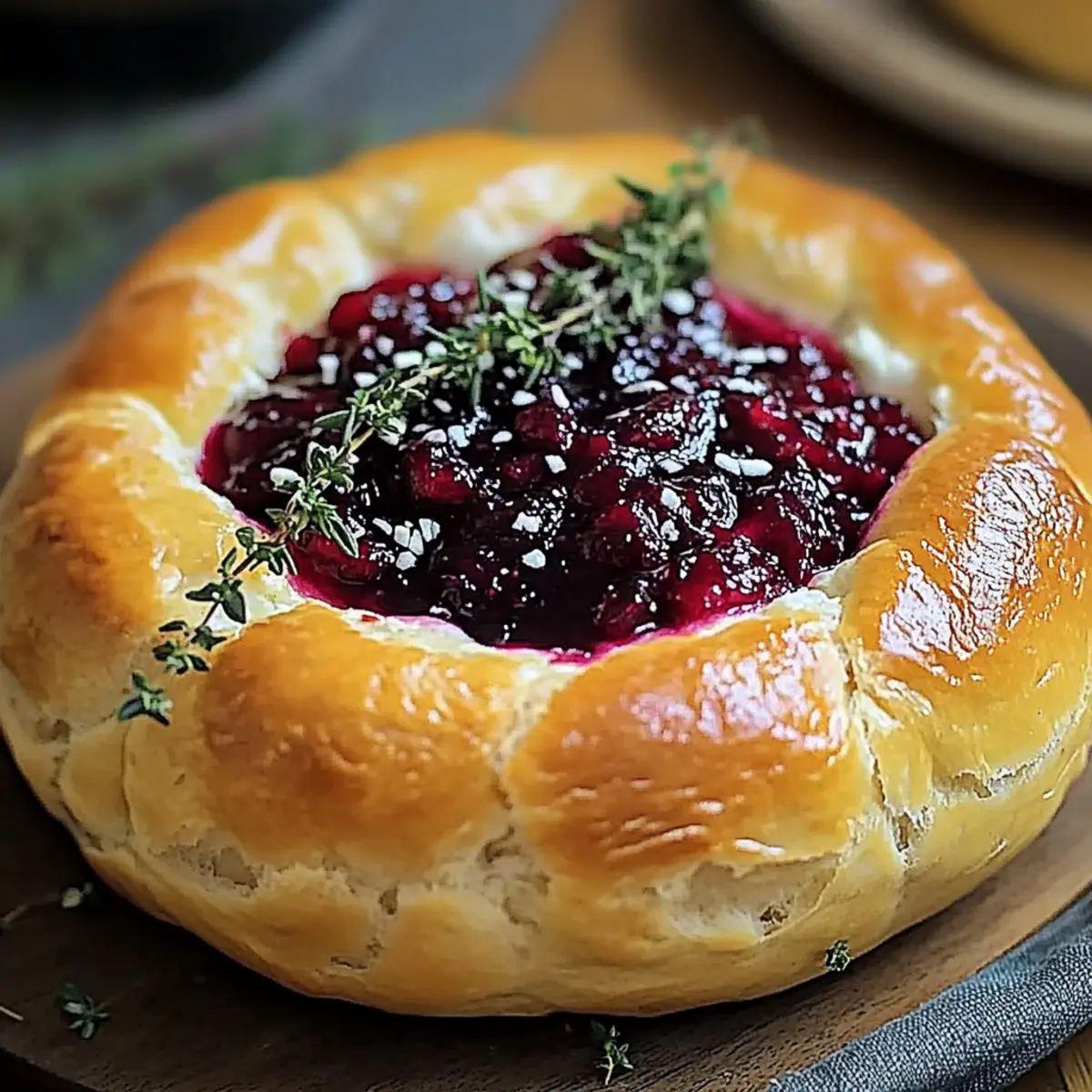 Baked Brie in Bread Bowl with Cranberry Sauce & Thyme Delight
