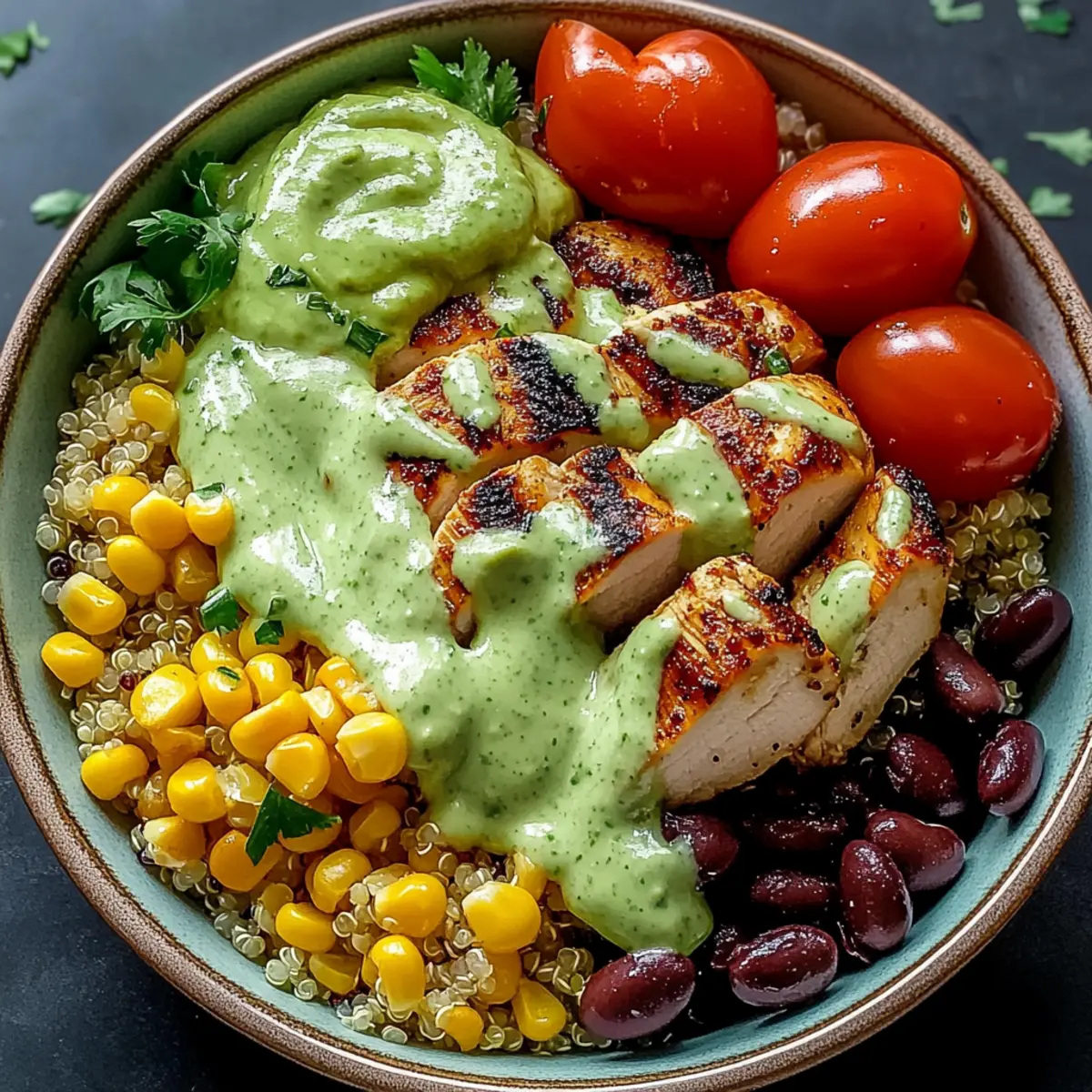 Grilled Chicken Quinoa Bowls with Creamy Avocado Sauce Bliss