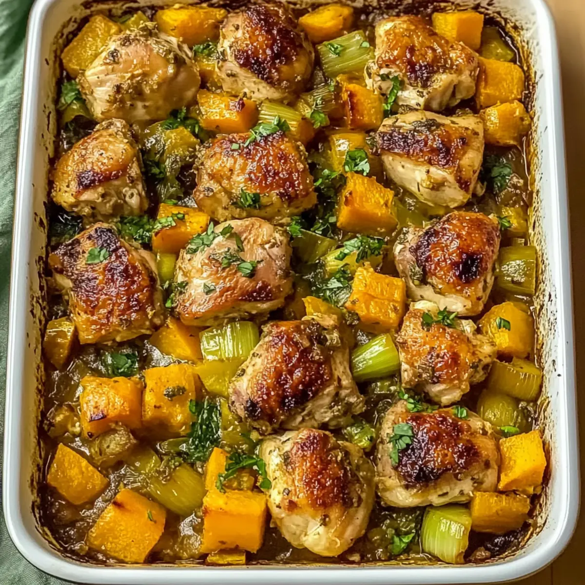 Hearty Roasted Chicken Leek and Butternut Squash Bake Delight
