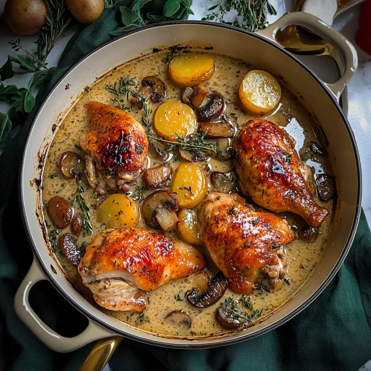 Savory Herb Roasted Chicken in Creamy White Wine Sauce Delight