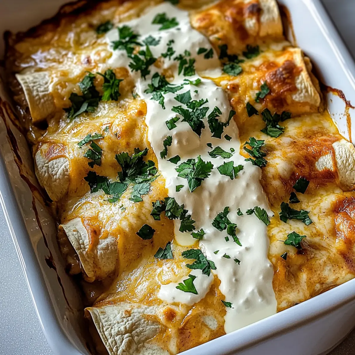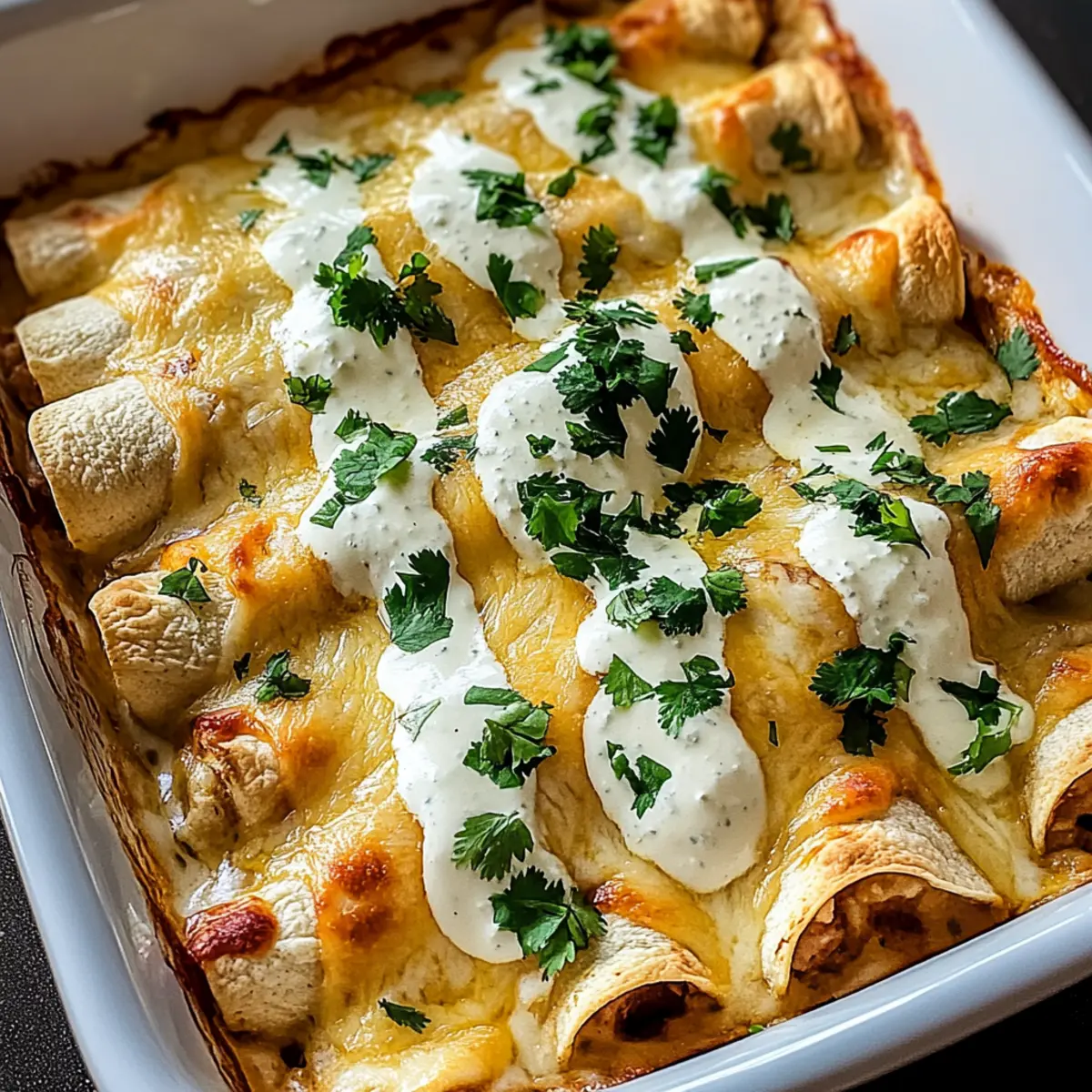 - Even Sauce Distribution: Drizzle the dreamy white sauce evenly over the enchiladas to ensure every bite is creamy and delicious.