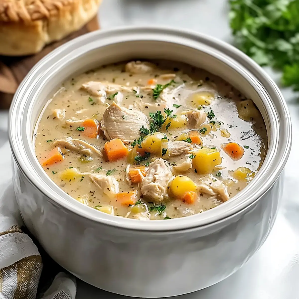 Comforting and hearty, this Chicken Pot Pie Soup brings all the nostalgic flavors of a classic pot pie right to your bowl. Quick prep means you can have it ready in no time, making it a perfect family-friendly meal for any weeknight. One-pot convenience means less cleanup and more time to enjoy with loved ones. Plus, you can easily adapt it with different veggies or proteins, making it one of those versatile recipes that never get old. Serve it alongside some of your favorite warm biscuits, and you’ve got a cozy night in!