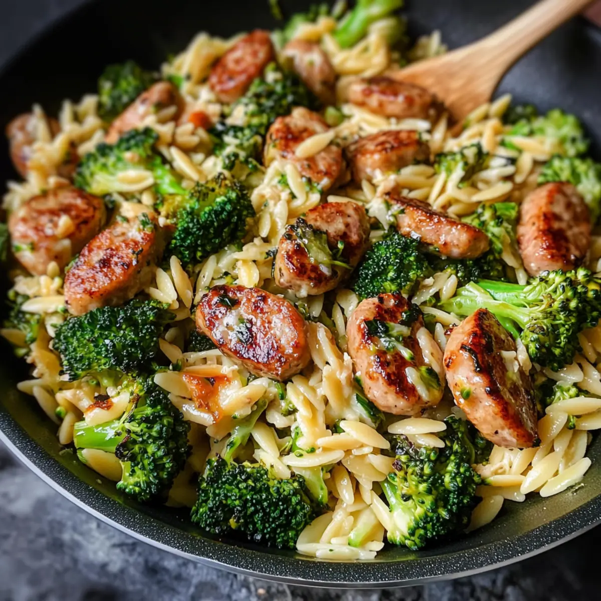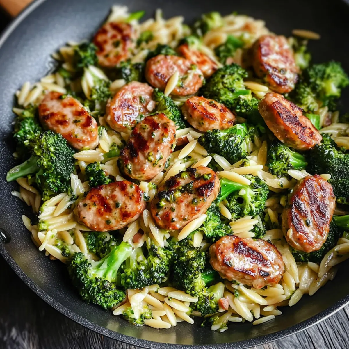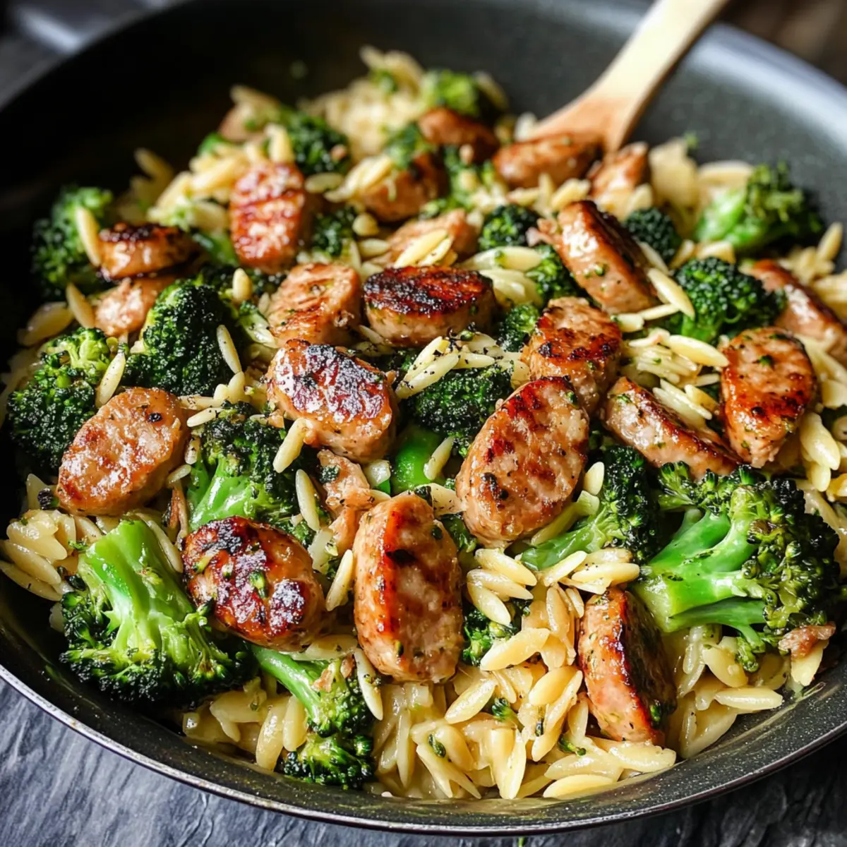 Delightful Chicken Sausage, Broccoli, Orzo Skillet in 30 Minutes