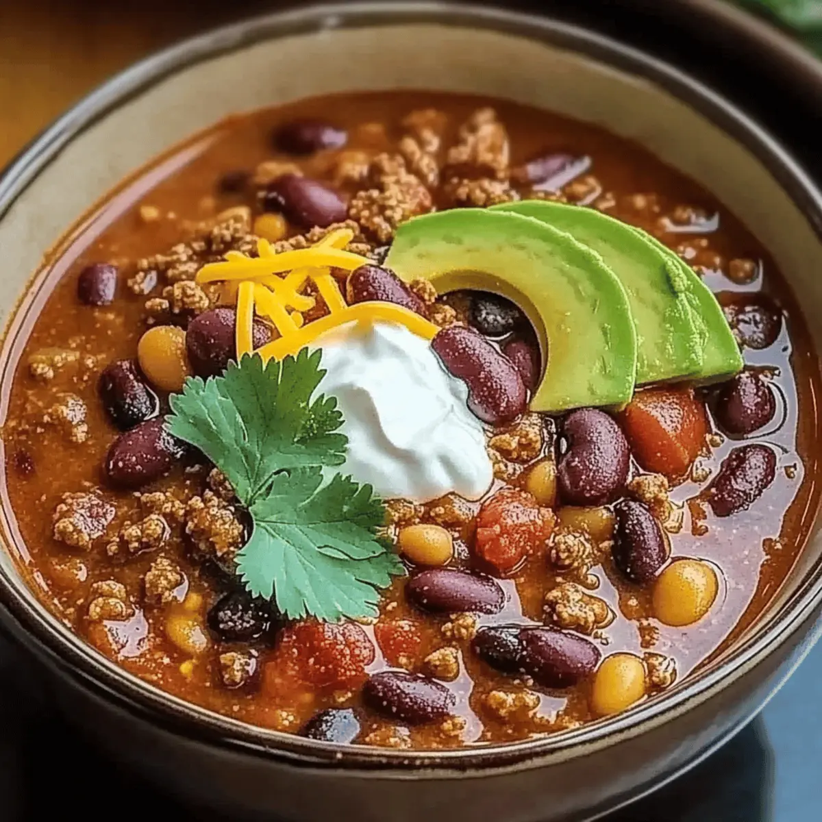 High Protein Boost: Packed with ground turkey and beans, this chili delivers a satisfying protein punch to keep you energized.