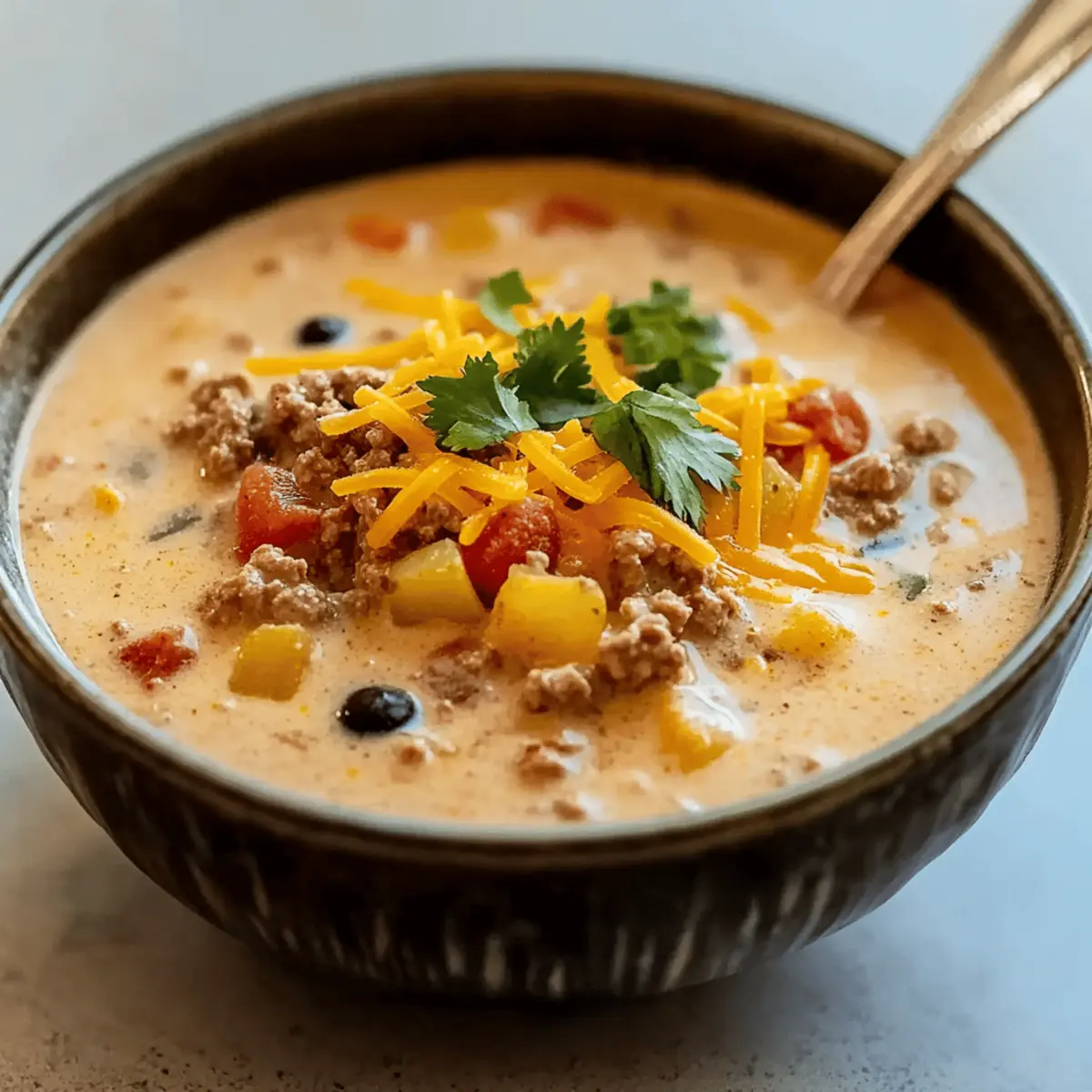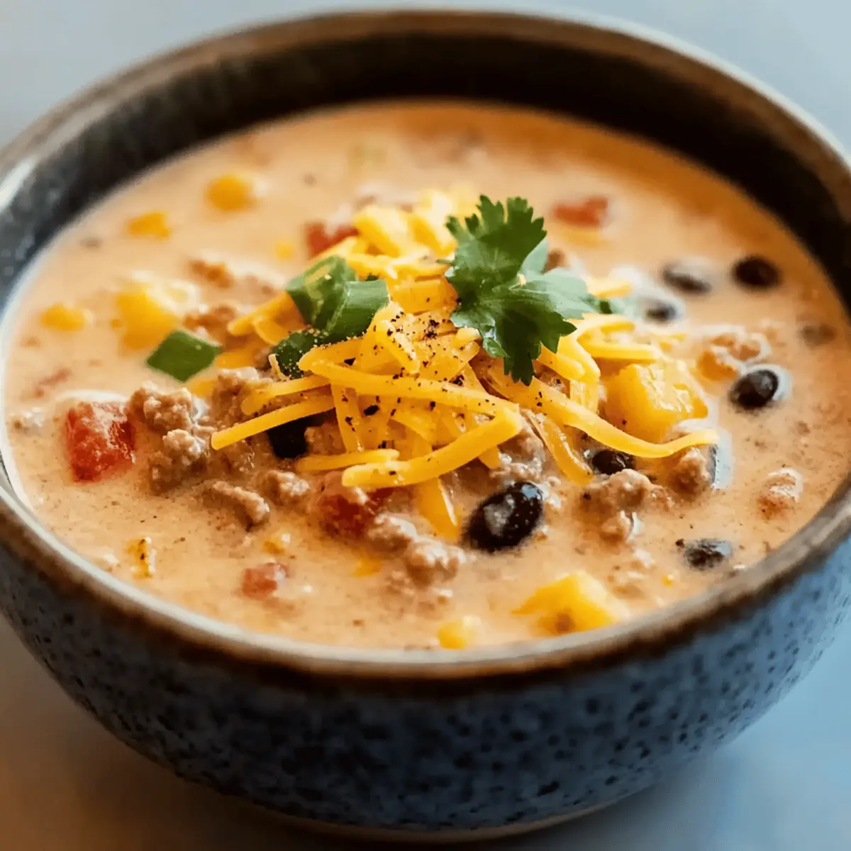 - Ladle the Creamy Cowboy Soup into bowls, garnishing with sliced green onions, extra cheese, or tortilla chips. Serve hot.