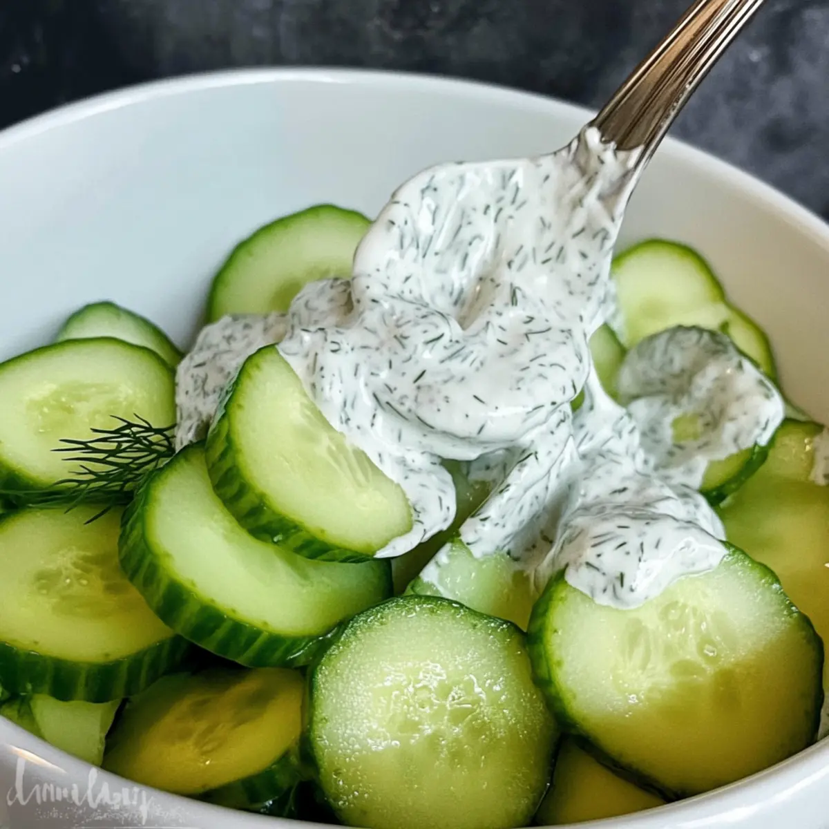 - Pour the dressing over the cucumber slices and toss gently to coat.