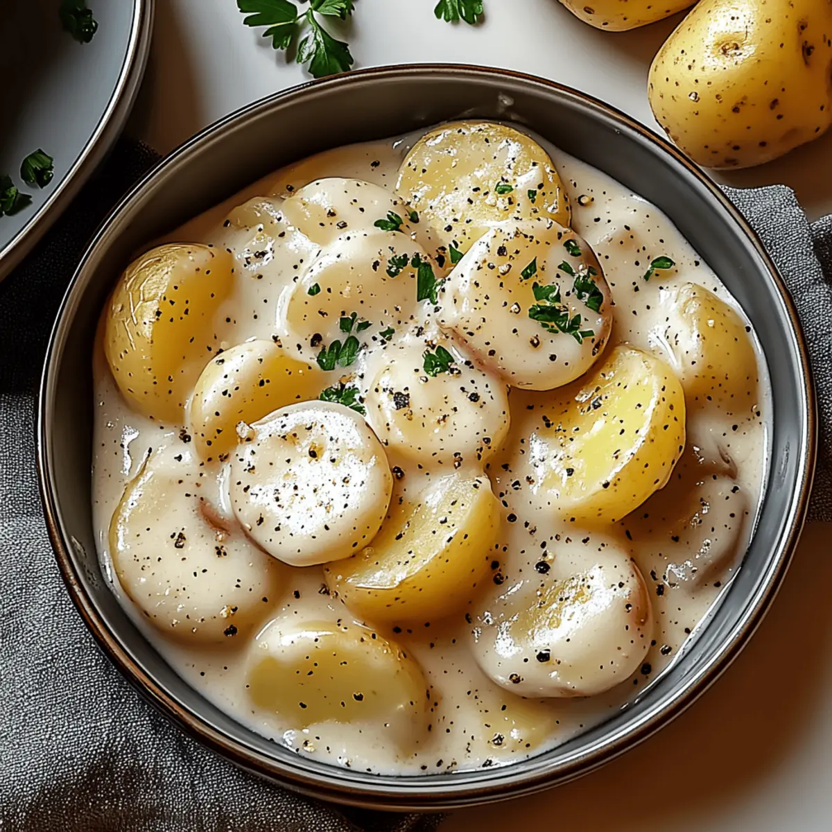 Crispy Topping: Top with crispy bacon bits or finely chopped chives for a savory crunch that complements the creamy sauce beautifully. The added texture provides a satisfying contrast to the soft potatoes.