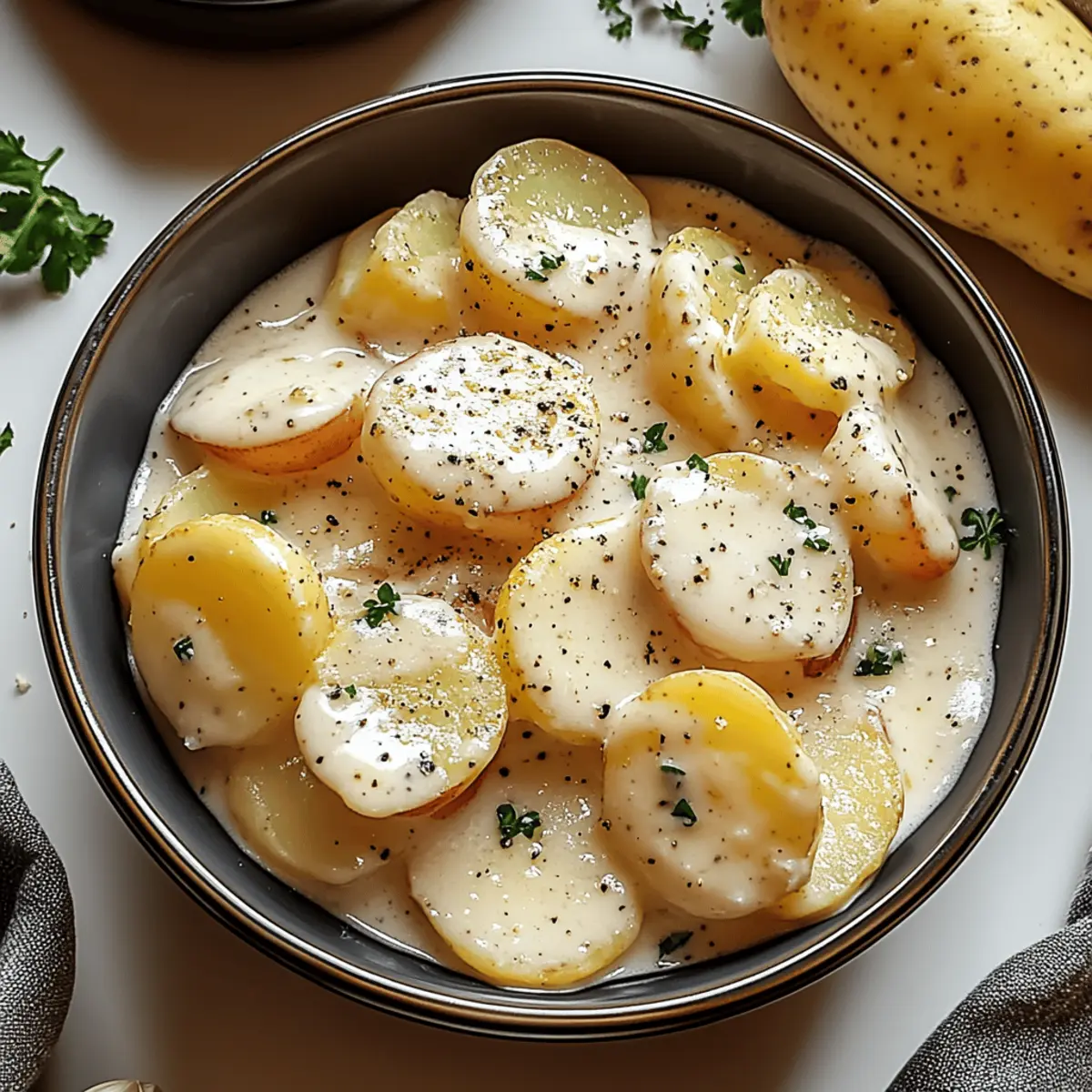 “Couldn’t we just order takeout?” I overheard my partner sigh, scanning our kitchen in search of inspiration. I couldn’t help but smile, knowing I had a little culinary magic up my sleeve: Creamy Garlic Sauce Potatoes. This dish transforms humble potatoes into a comforting side that’s both rich and creamy, enveloped in a luscious garlic sauce that sings with flavor. Not only is it a fantastic way to elevate any meal with minimal effort, but it also serves as a versatile canvas for all sorts of family dinners and festive gatherings. Whether paired with grilled meats or served at holiday feasts, these potatoes promise to be a hit! So, are you ready to say goodbye to takeout and indulge in this cozy delight? Let’s dive into the recipe!