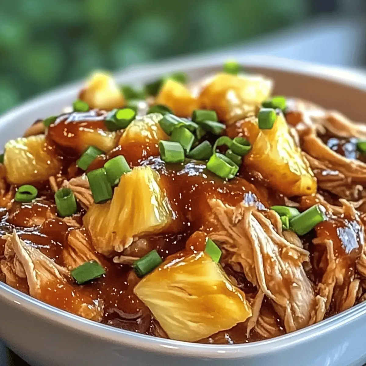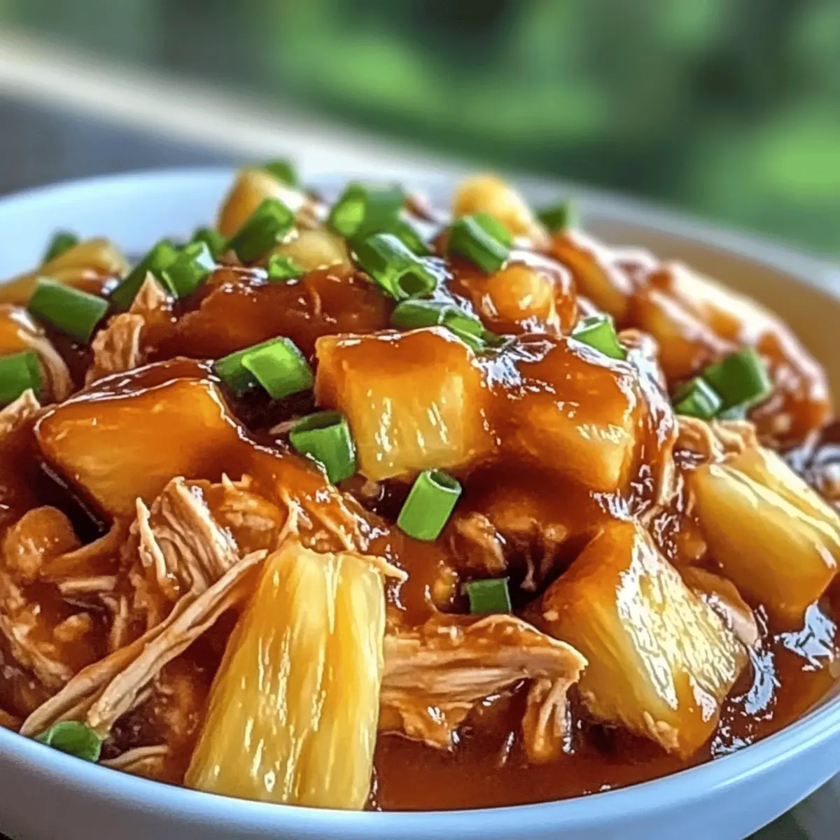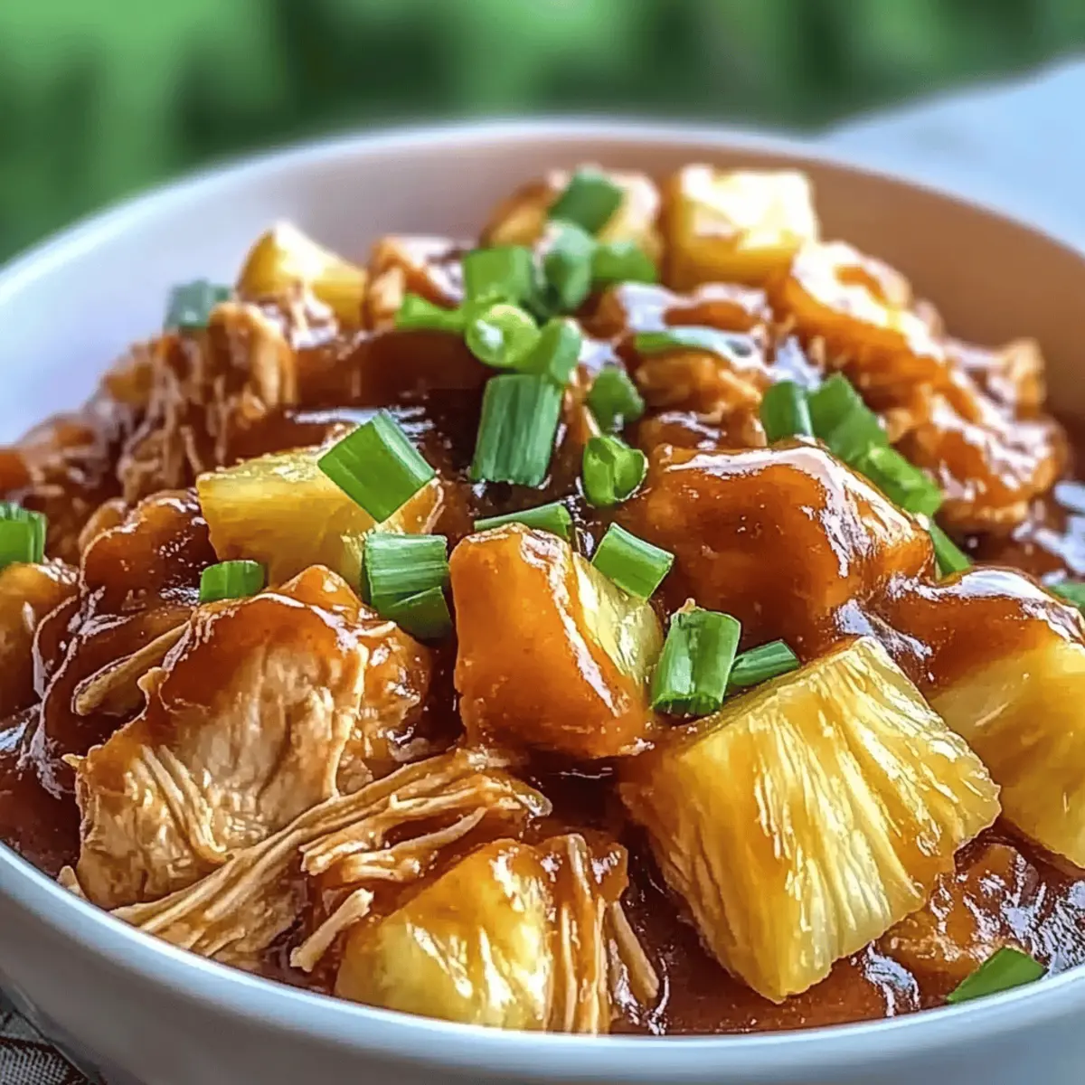 Once ready to serve, ladle the flavorful chicken onto plates or in bowls. Garnish with chopped green onions for a pop of freshness and visual appeal. This finishing touch enhances the dish’s presentation and adds a crisp bite to the sweet, savory notes of your Crockpot Pineapple BBQ Chicken.