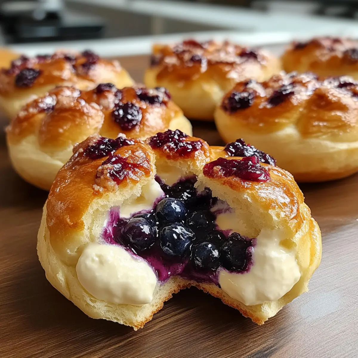 Bursting with Flavor: Topped with a sweet blueberry compote, these buns bring a fresh, fruity note that perfectly balances the richness of the cheesecake.
