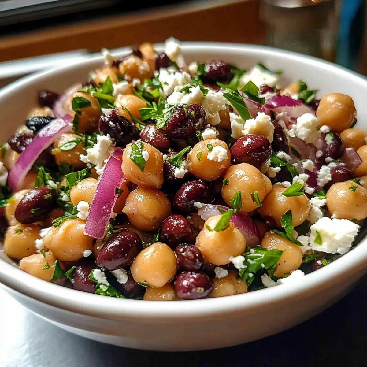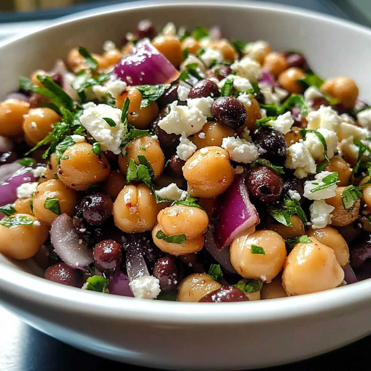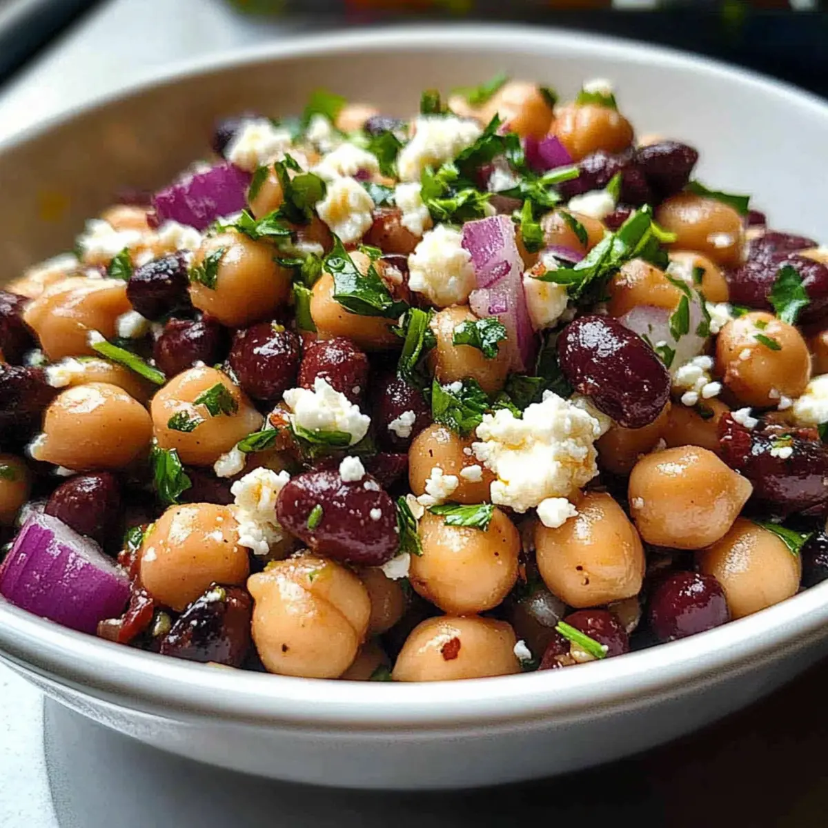 Vibrant flavors: This salad offers a delightful combination of chickpeas and black beans, complemented by the tangy feta and refreshing parsley. Meal prep-friendly: It stores beautifully in the fridge, making your busy week a breeze. Healthy goodness: Packed with protein and fiber, it fuels your body with every bite. Versatile delight: Customize it with your favorite add-ins like diced cucumbers or bell peppers. Crowd-pleaser: Impress family and friends at gatherings with this colorful, hearty dish. Discover how it pairs beautifully with whole grain pita or a side of Cucumber Caprese Salad for a festive spread!