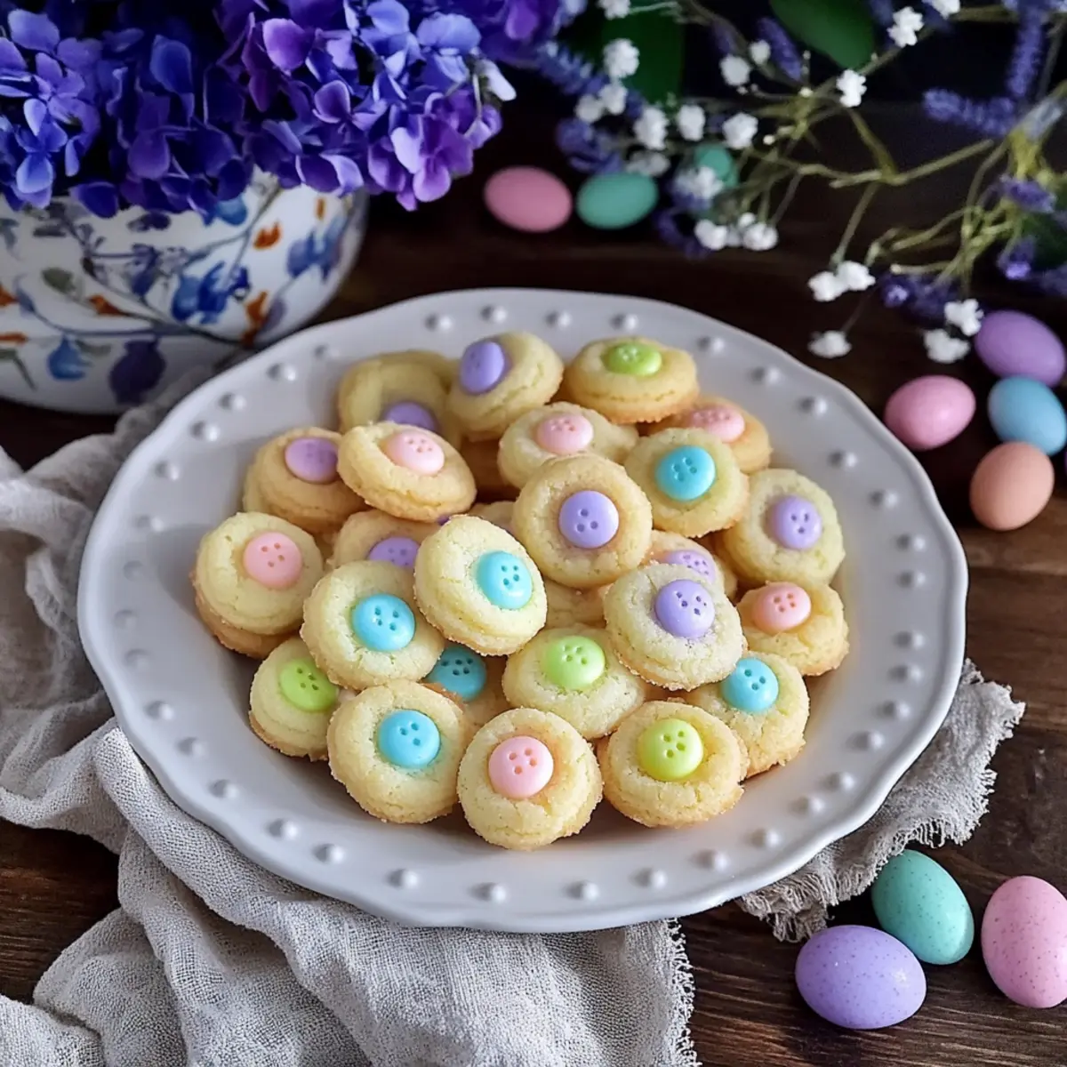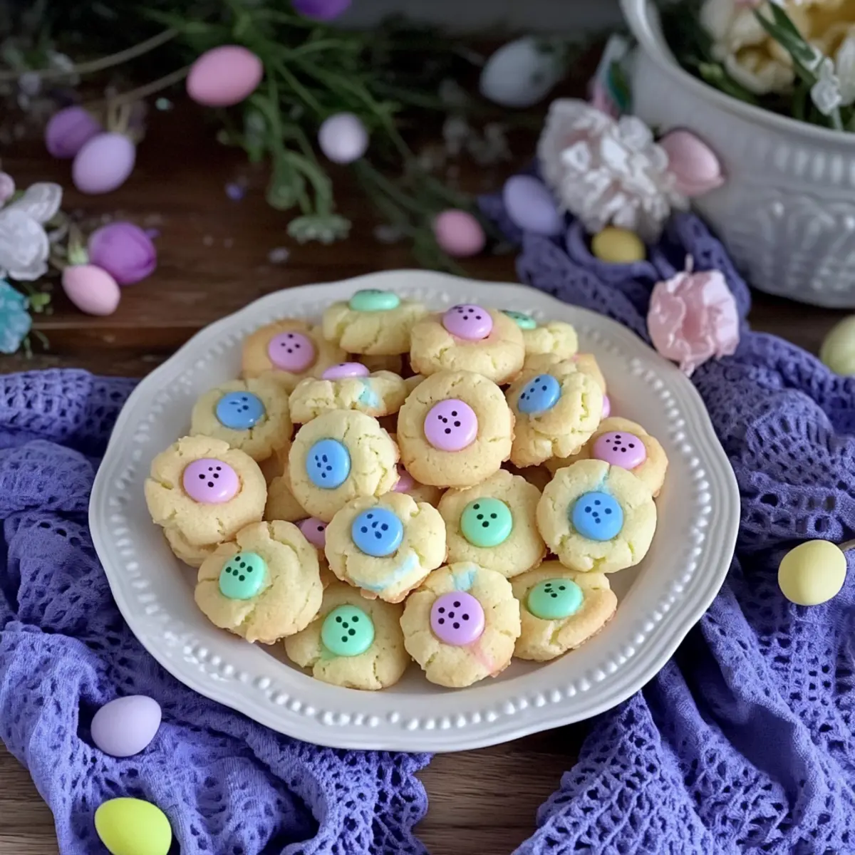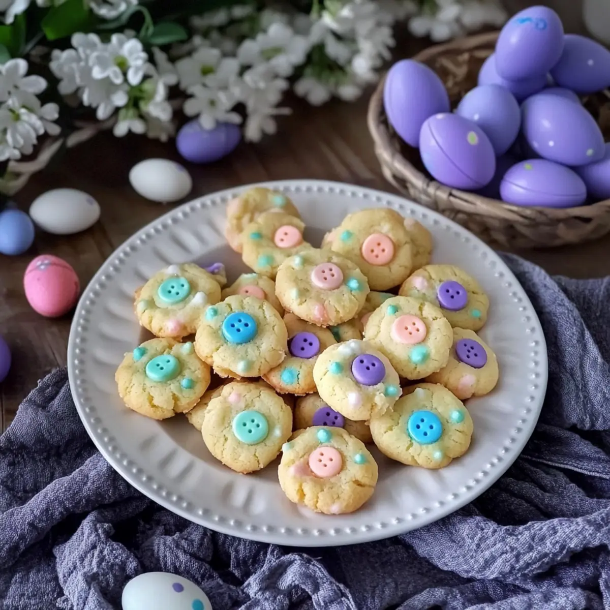 • Pastel Candy-Coated Chocolate Pieces – 1/2 cup. Creates the signature button look and adds a burst of color; alternatives include jelly beans or pastel chocolate eggs, though the latter holds shape better during baking.