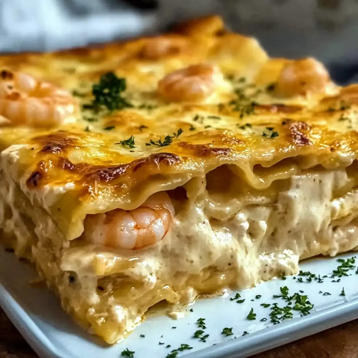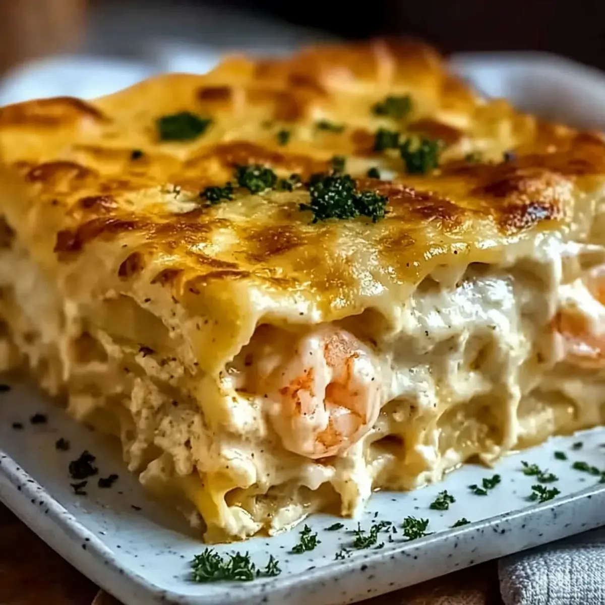 Scallops or Crab Meat: Swap shrimp for scallops or crab meat for a luxurious seafood twist that enhances the flavor profile beautifully. Both options bring a delicate sweetness that contrasts perfectly with creamy layers.