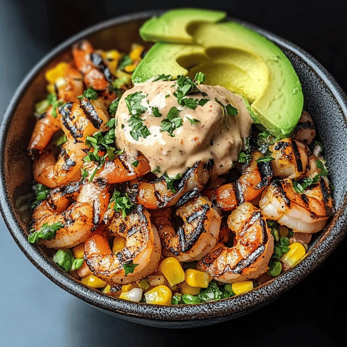 - Assemble bowls with rice or quinoa, grilled shrimp, avocado, and corn salsa.