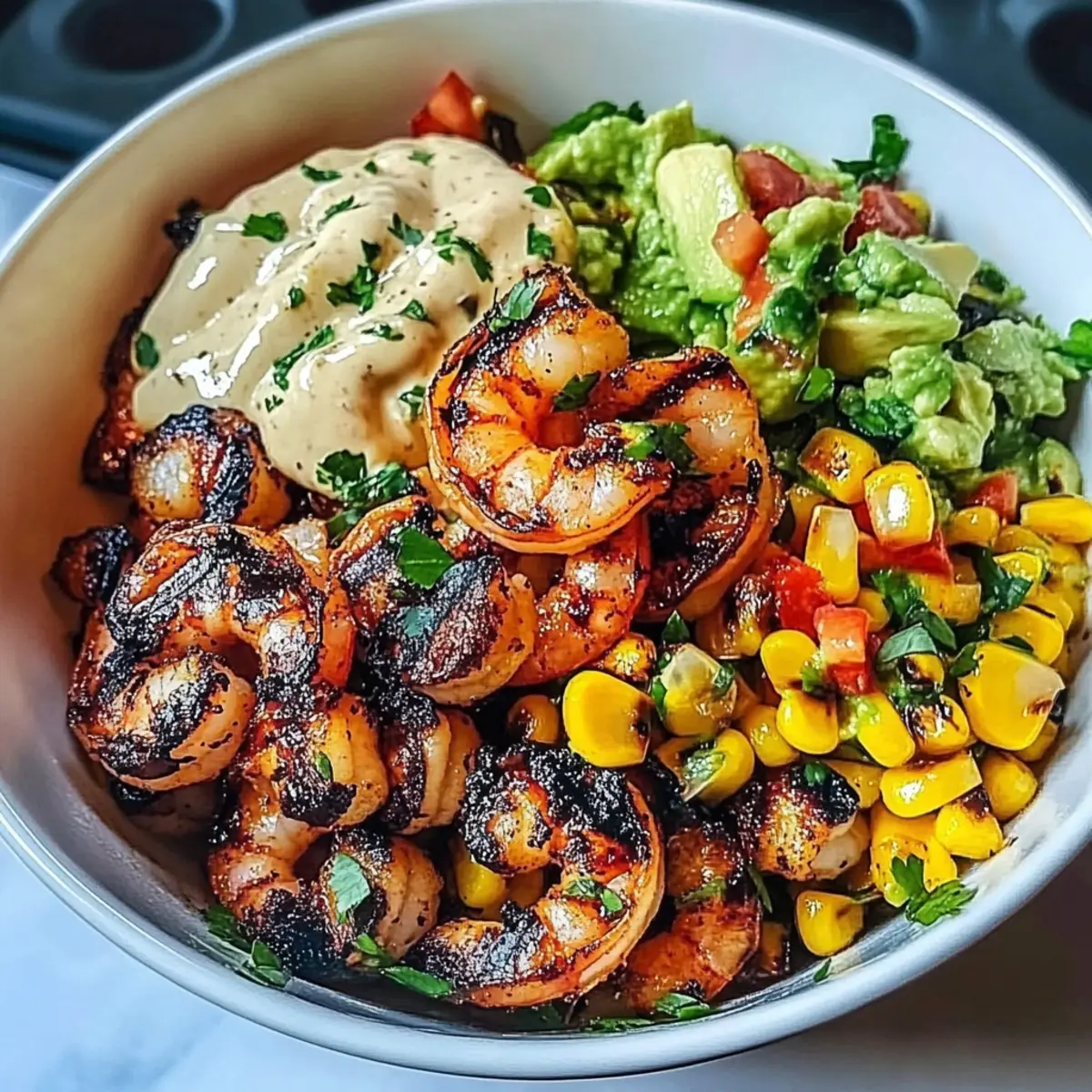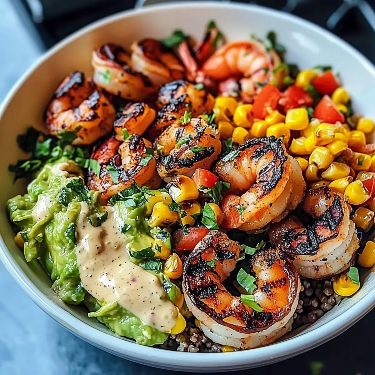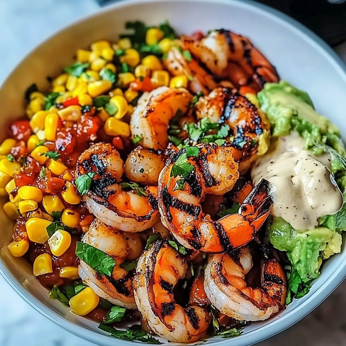 Delicious Grilled Shrimp Bowl with Avocado Corn Salsa Delight