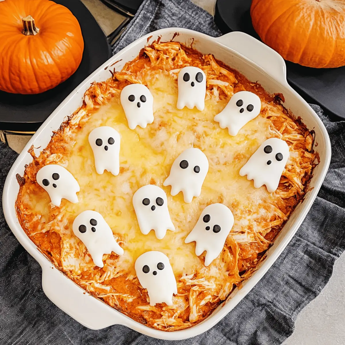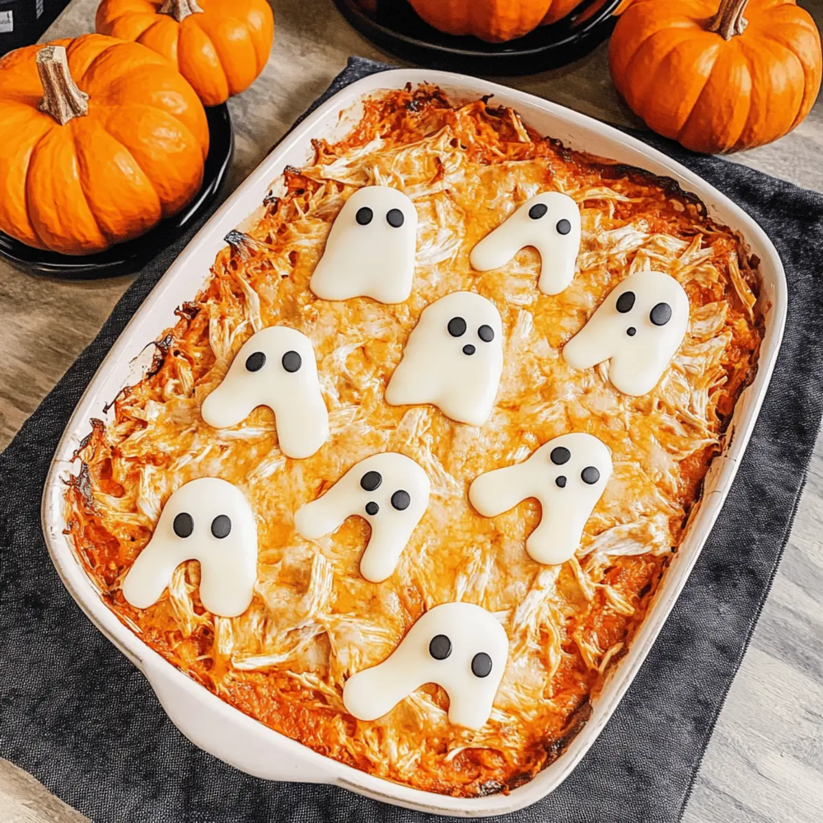 Festive Fun: This Halloween Buffalo Chicken Dip is more than just a tasty treat; it transforms your appetizer table into a spooky scene with delightful ghost-shaped cheese. Crowd-Pleasing Flavor: The spicy buffalo sauce combined with creamy cheese makes it irresistible, ensuring your guests keep coming back for more. Easy to Prepare: With simple steps and minimal prep time, you can whip this up quickly, leaving you free to mingle. Versatile Variations: Feel free to swap in BBQ sauce for a milder flavor or experiment with different cheeses for a unique twist. For more festive ideas, consider pairing this dip with Cheesy Garlic Chicken Wraps or serve alongside Spicy Chipotle Chicken for an epic Halloween spread!