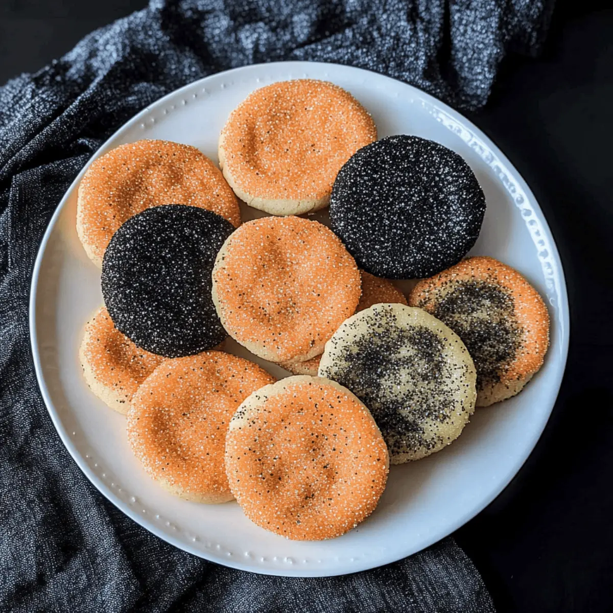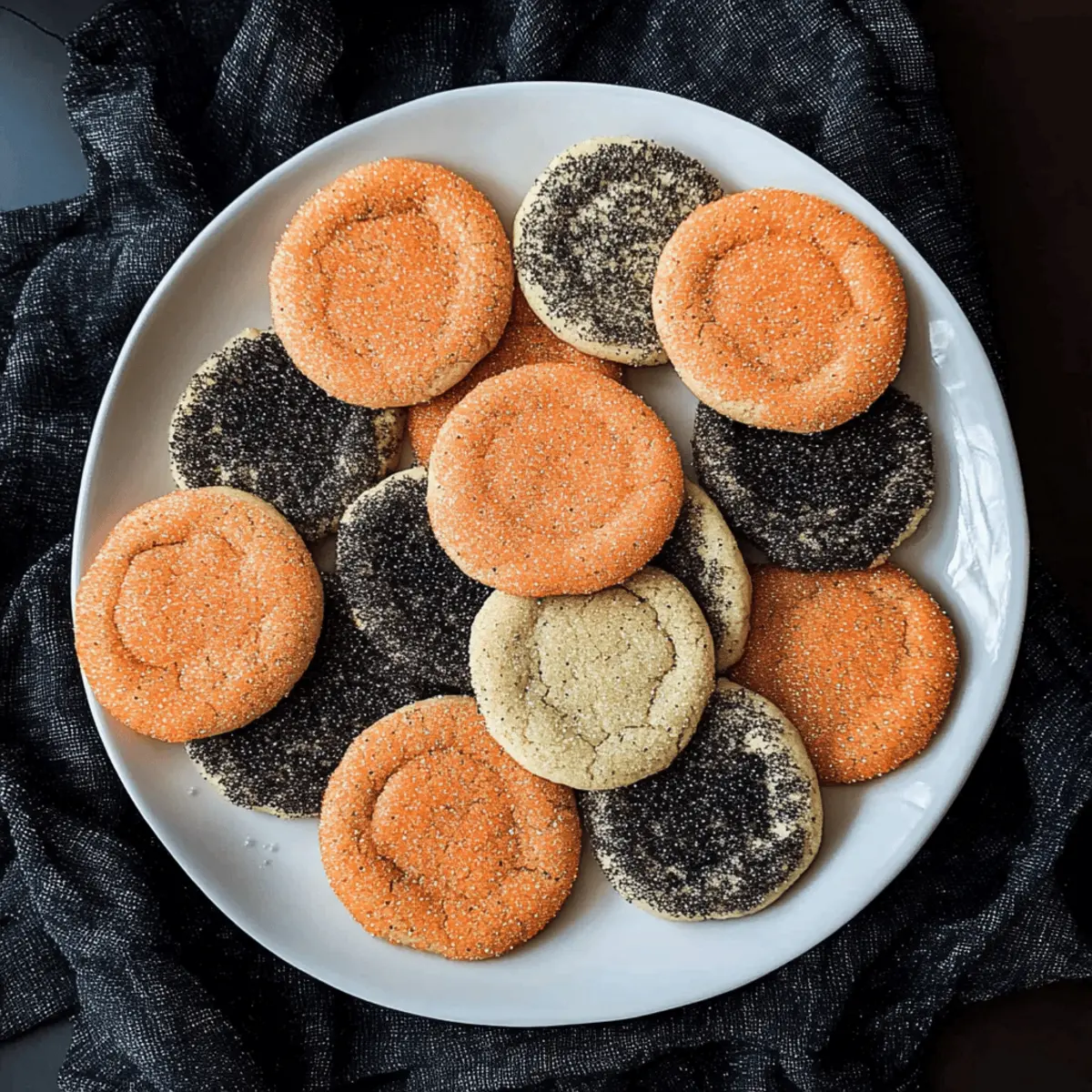 Using a cookie scoop or your hands, portion out heaping tablespoons of dough and roll them into smooth balls. This should yield about 2 dozen cookies. To amp up the festive spirit, roll each dough ball in colored sanding sugar before placing them on a lined baking sheet, ensuring they’re evenly coated for that fun Halloween flair.