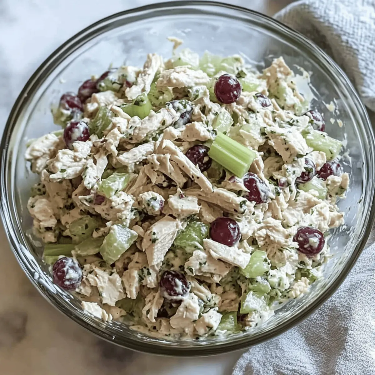 These Healthy Chicken Salad recipes are perfect for busy weeknights and meal prep! You can chop the chicken, celery, red onion, grapes, and herbs up to 24 hours in advance and store them separately in airtight containers in the refrigerator to maintain their freshness. Prepare the creamy dressing using Greek yogurt, Dijon mustard, and lemon juice ahead of time as well—this can stay good in the fridge for up to 3 days. When you’re ready to enjoy your salad, simply combine everything in a bowl and mix well to ensure that each ingredient is coated with the dressing. This way, you’ll have a nutritious, delicious meal ready to go with minimal effort!