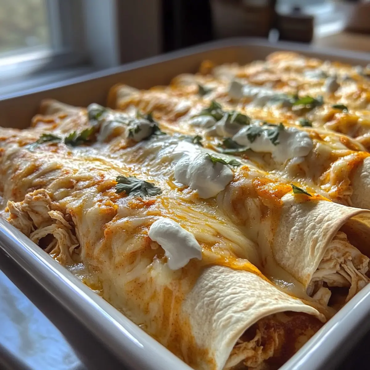 Flavor Explosion: Each bite of these enchiladas is a delightful combination of creamy white sauce and savory chicken.