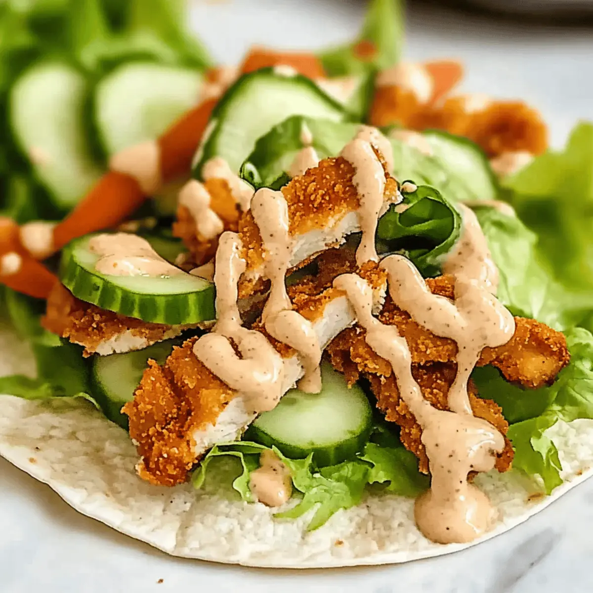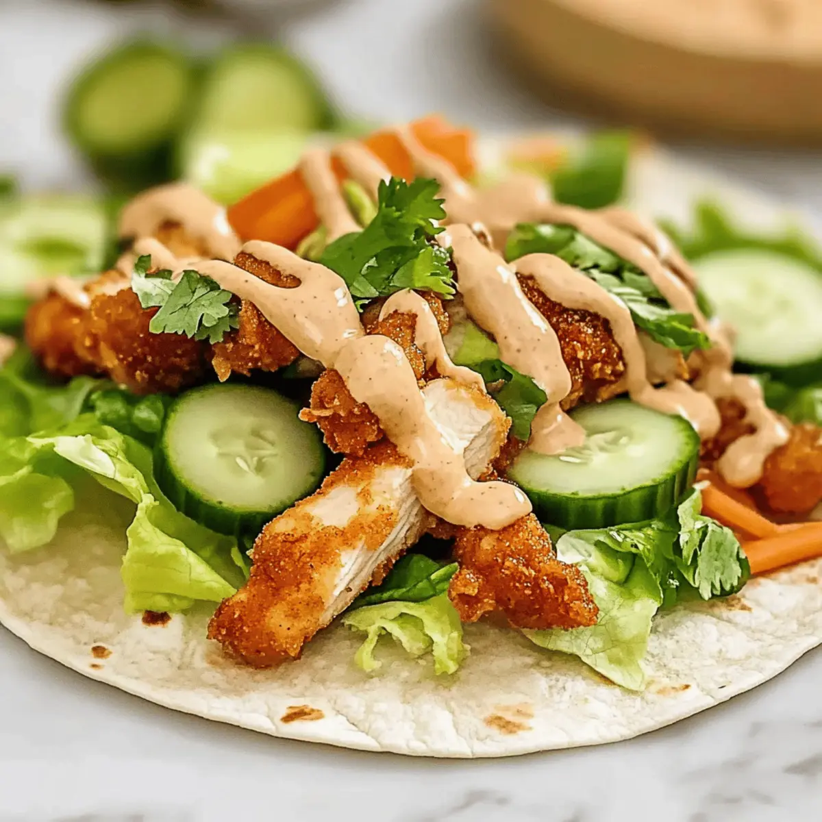 Take a large flour tortilla and spread a generous layer of the honey mustard sauce over it. Next, add a slice of provolone cheese, crumbled bacon (if using), and a portion of your dressed salad mix. Top this with the cooked chicken strips and another drizzle of sauce, ensuring plenty of flavor in each bite.