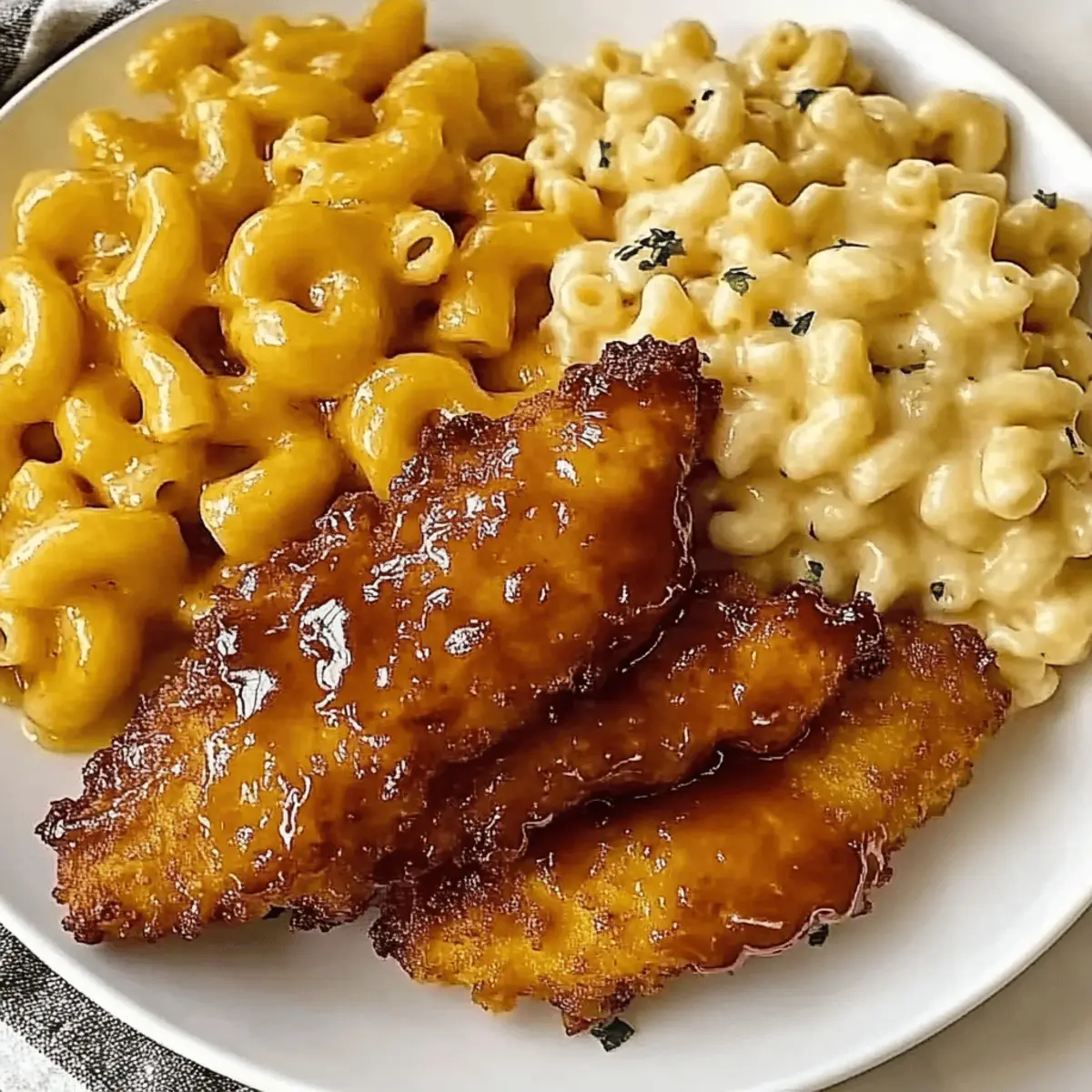 Hot Honey Chicken Tenders with Baked Mac and Cheese Bliss