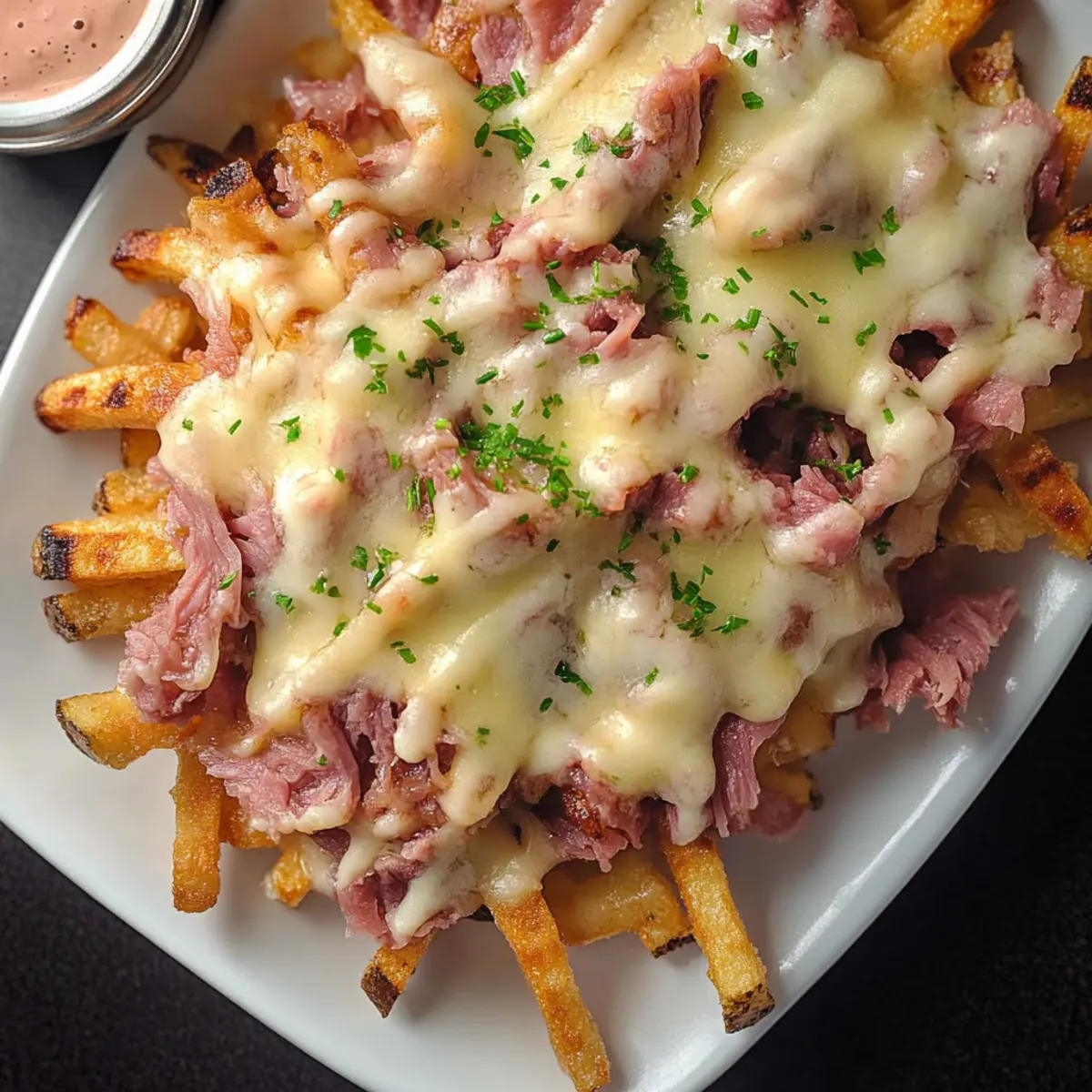 Flavor Explosion: The combination of crunchy waffle fries, savory corned beef, and gooey cheese topped with tangy dressing creates an incredible taste experience.