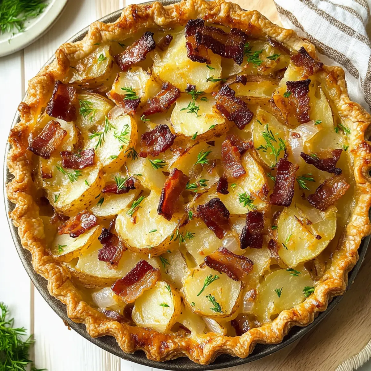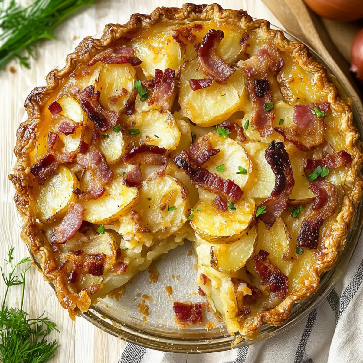 As I sifted through my recipe box, a cherished note emerged—an old family favorite that always whisks me back to festive gatherings: Savory Irish Potato Pie. Layers of crispy bacon, tender potatoes, and sweet onions enveloped in flaky pastry make this dish an irresistible comfort food that sings with tradition. Perfect for St. Patrick’s Day or any day craving a touch of warmth, it’s an effortless make-ahead option that comforts both the belly and soul. Each slice offers a delightful combination of textures and flavors, creating a cozy and satisfying experience that will have everyone asking for seconds. Curious how this hearty pie comes together? Let’s dive into the delicious details!