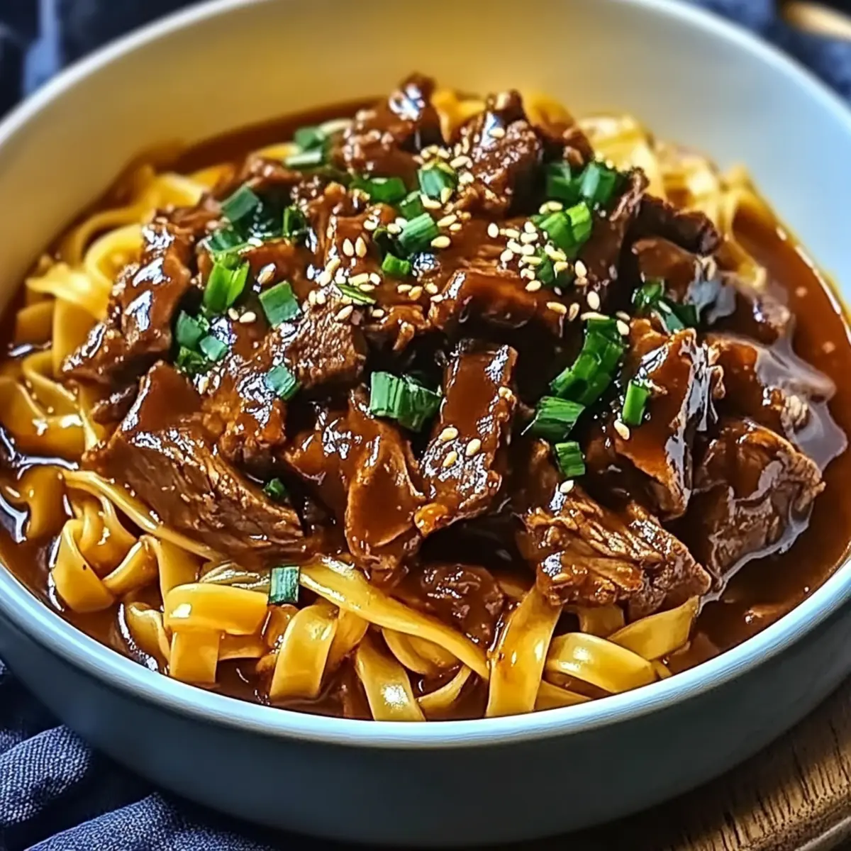 Once the beef is tender, gently mix in the cooked noodles into the slow cooker with the beef and sauce. Stir carefully to ensure the noodles absorb the rich, savory sauce without breaking apart. This melding of flavors makes every bite of your Korean Beef Noodles a delightful experience!