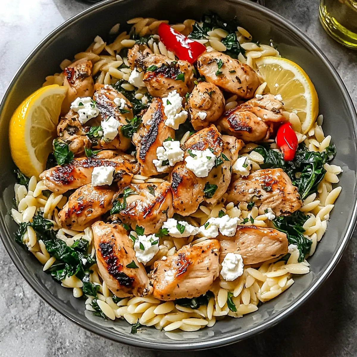 After the orzo has cooked to perfection, stir in the fresh spinach or kale. Continue to cook for an additional 2-3 minutes until the greens are wilted and vibrant. This not only adds color to your Lemon-Feta Chicken and Orzo but also packs in essential nutrients for a satisfying meal.