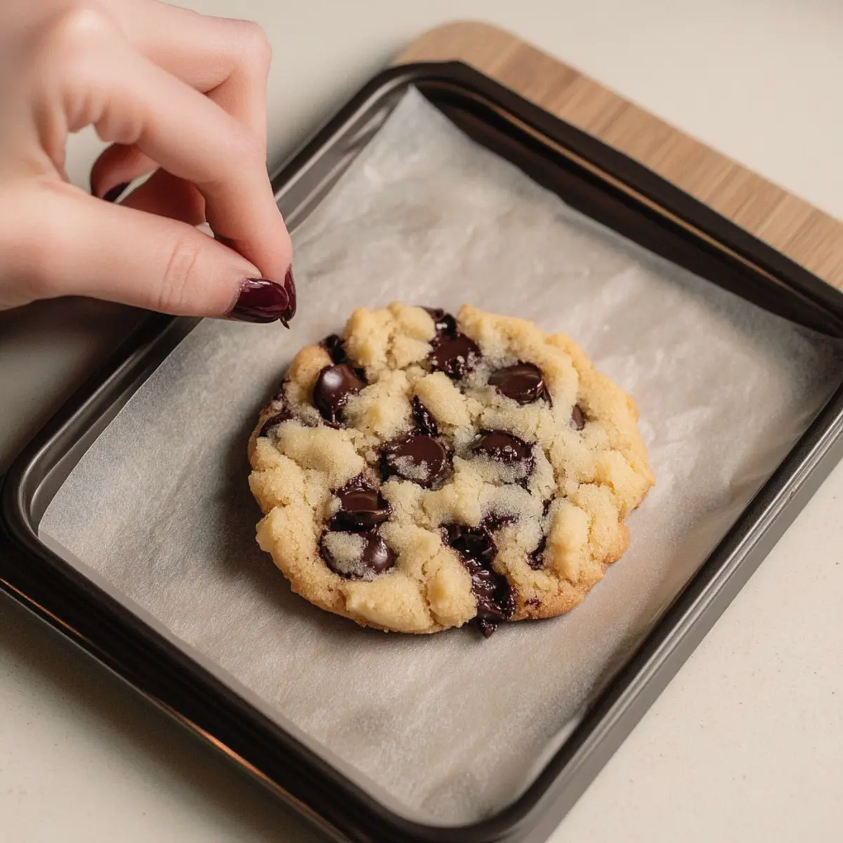 Preheat your oven to 400°F (205°C). Once the oven reaches the desired temperature, place 3–4 dough balls on a baking tray, ensuring space between them. Bake for 9–11 minutes, until the edges are golden brown but the centers appear slightly underbaked and gooey.