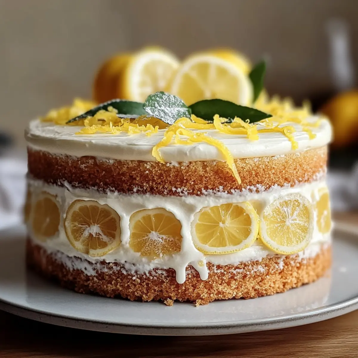 - Use remaining frosting to cover the top and sides, decorating with lemon zest or lemon slices.