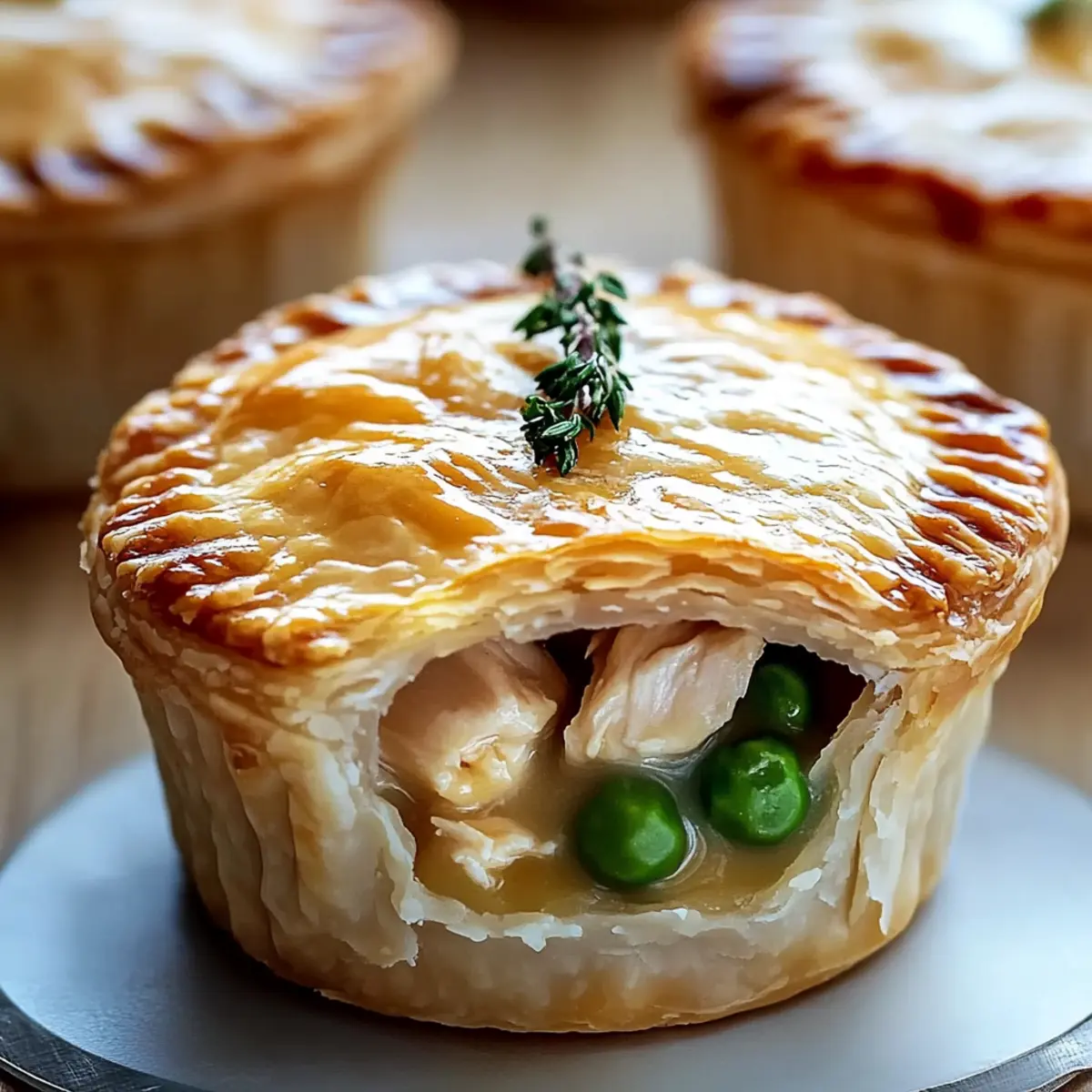 These Mini Chicken Pot Pies are perfect for meal prep enthusiasts! You can assemble the pies up to 24 hours in advance, making them a fantastic choice for busy weeknights. To ensure freshness, prepare the filling and spoon it into the pastry cups, then cover them with plastic wrap and refrigerate. When you’re ready to bake, simply remove the plastic and brush with egg wash, adding an extra 5-10 minutes to the baking time if they are cold. This method keeps the flaky crust just right and the filling just as delicious as if you had made them fresh. Enjoy the blend of warm, comforting flavors without the last-minute rush!