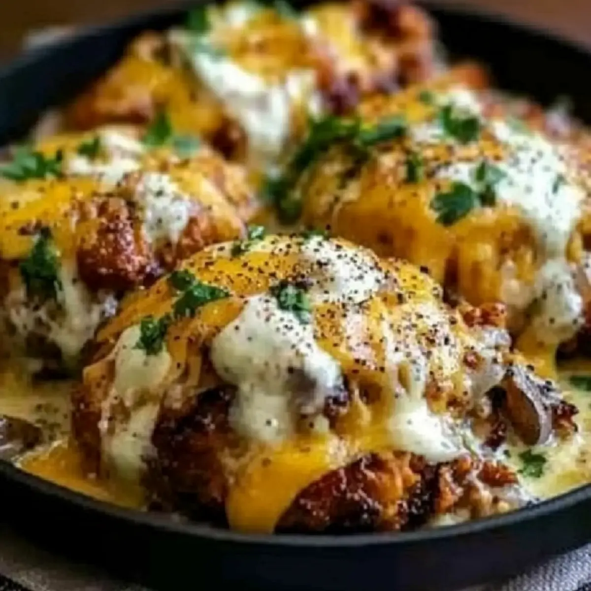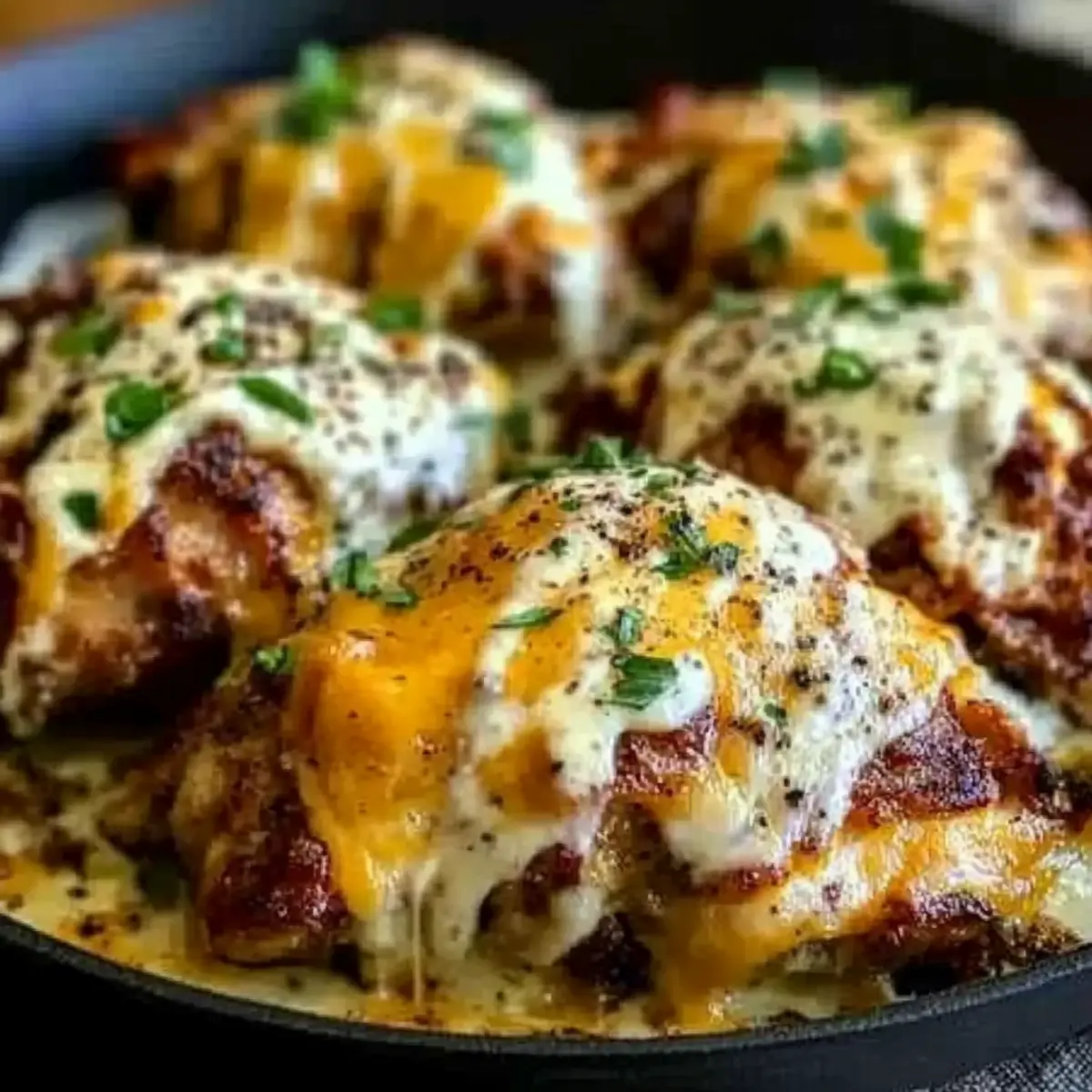• Shredded Cheddar Cheese – Melts beautifully to create a gooey layer over the chicken.