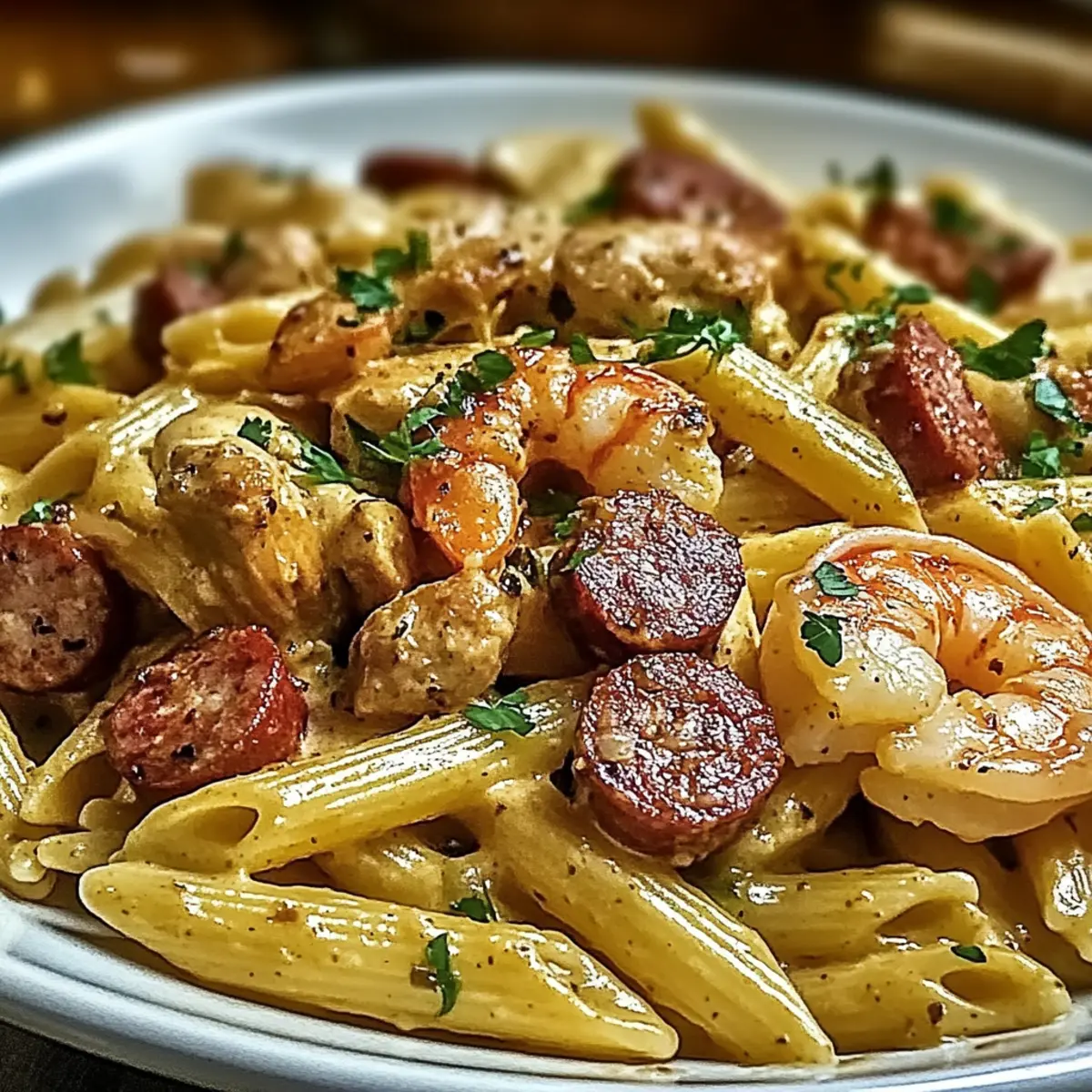 A whiff of smoky andouille sausage sizzling in a skillet can instantly transport me to the vibrant streets of New Orleans, where flavor reigns supreme. This Creamy Cajun Pappadeaux Mardi Gras Pasta isn’t just a dish; it’s a celebration in a bowl, marrying succulent shrimp, juicy chicken, and a medley of colorful veggies in a rich, creamy sauce. Whether you’re juggling a busy weeknight or preparing for an impromptu dinner party, this recipe has you covered in under 30 minutes, making it a true crowd-pleaser. Best of all, with customizable ingredients, you can tailor it to suit your cravings or dietary needs. Are you ready to bring a touch of that Louisiana magic to your kitchen?