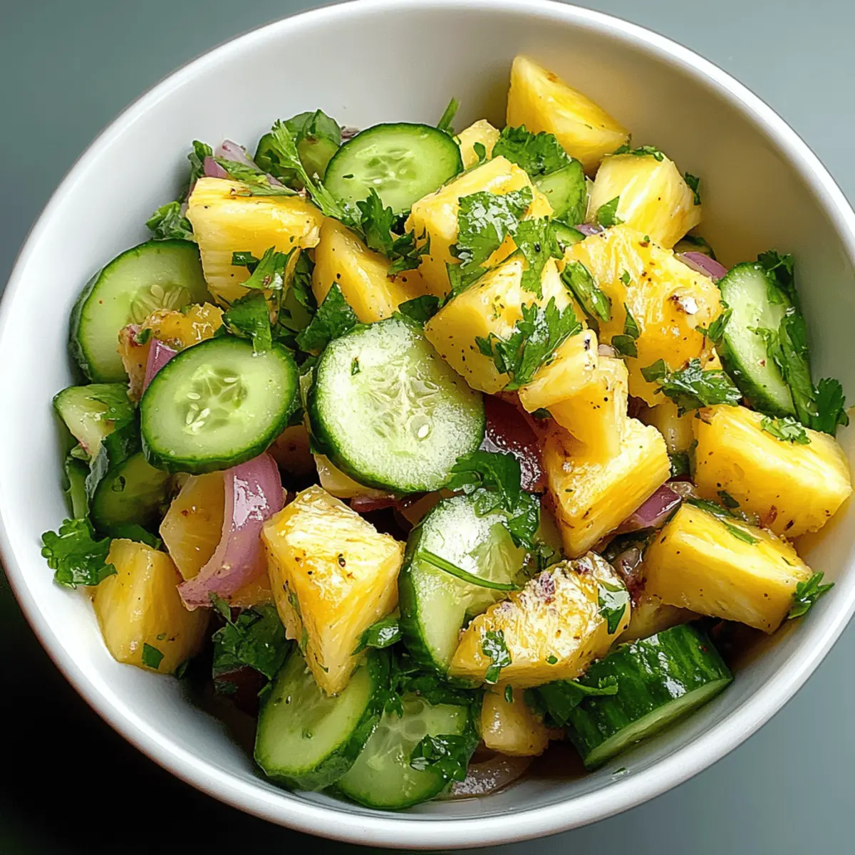 Add Texture: Consider adding diced avocado or chopped nuts for an extra dimension of texture and flavor in your Pineapple Cucumber Salad.