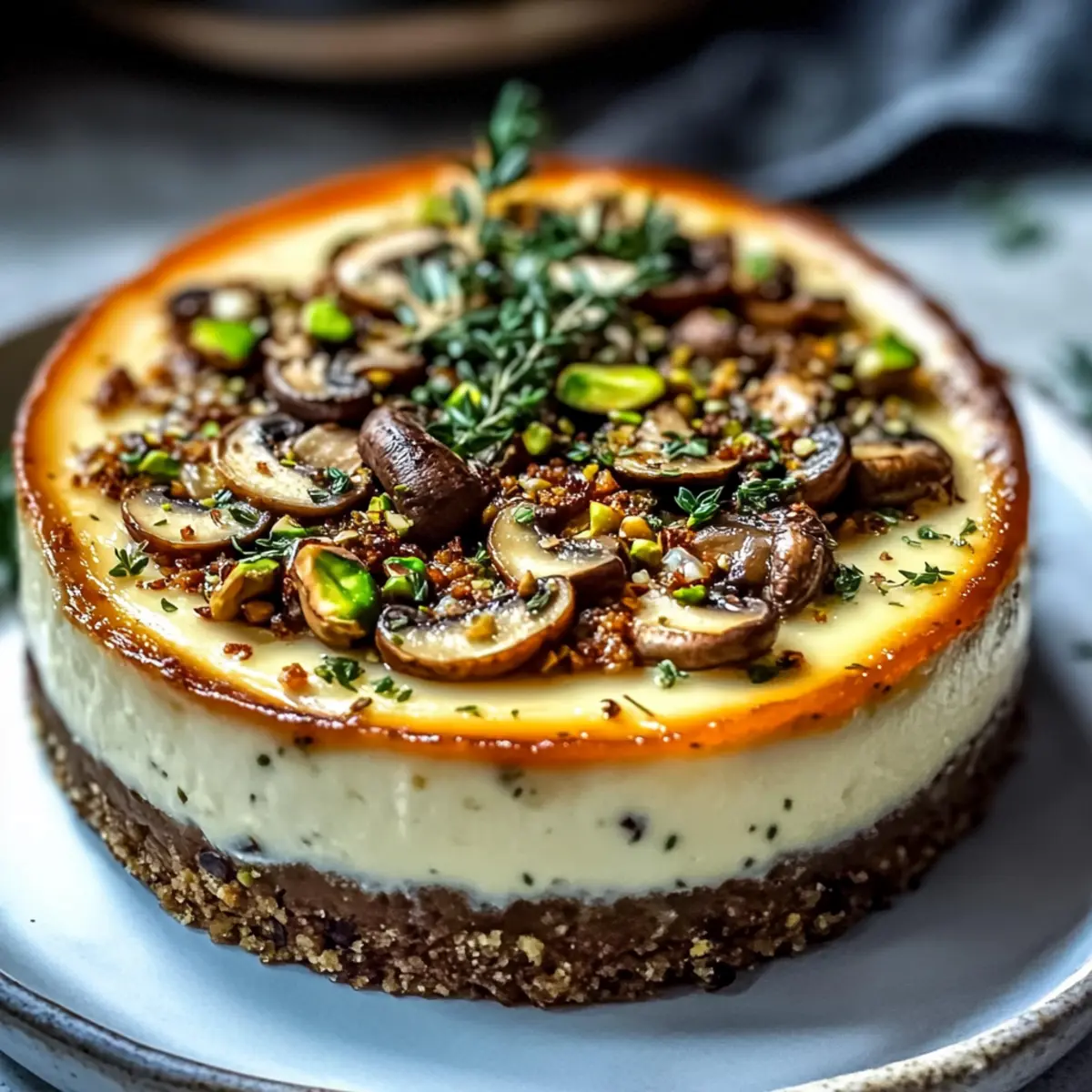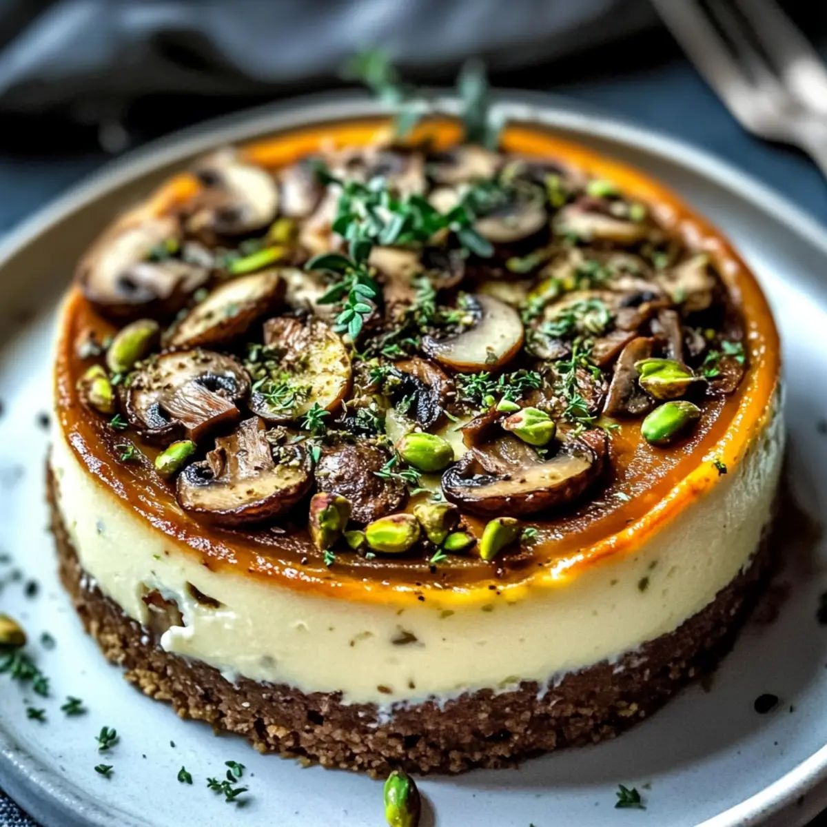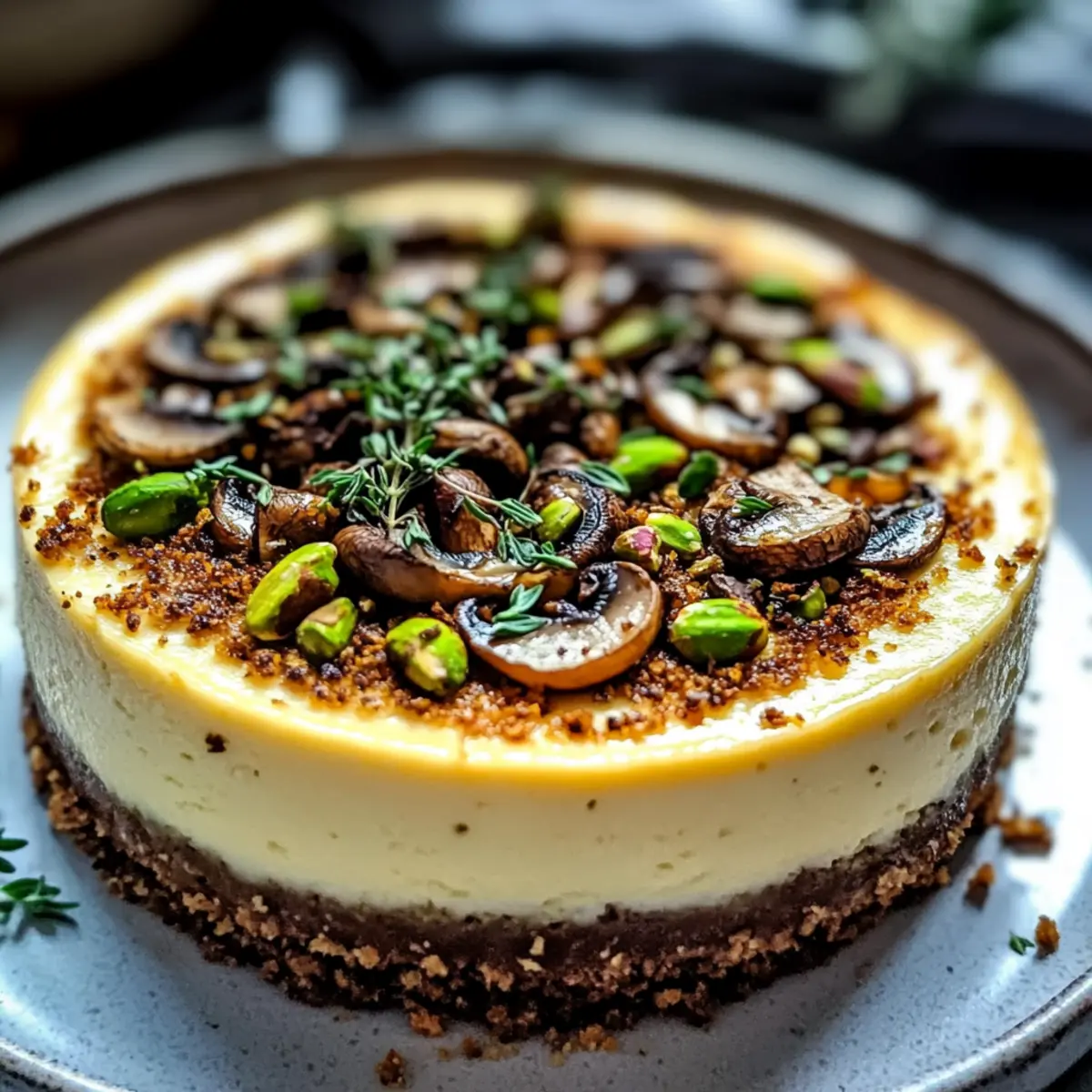 Savory Pistachio and Mushroom Cheesecake with Feta Crust