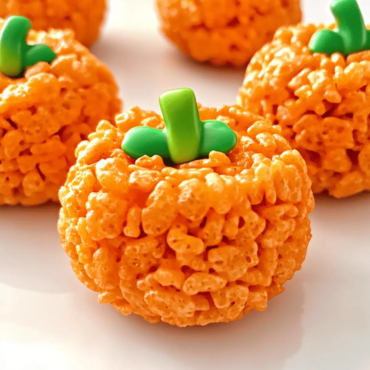 Deliciously Fun: These Pumpkin Rice Krispie Treats are not only visually adorable but also deliciously fun to make with kids. No-Bake Simplicity: With no baking required, even novice cooks can create these delightful treats effortlessly. Fall Flavor: The vibrant orange color and festive toppings perfectly capture the spirit of autumn, making them irresistible at any gathering. Endless Variations: Feel free to customize your treats with extra goodies like chopped candies or spices for a personal touch. Crowd-Pleasing Appeal: Whether for Halloween or Thanksgiving, these adorable treats are guaranteed to put smiles on faces, making you the star of any fall festivity!