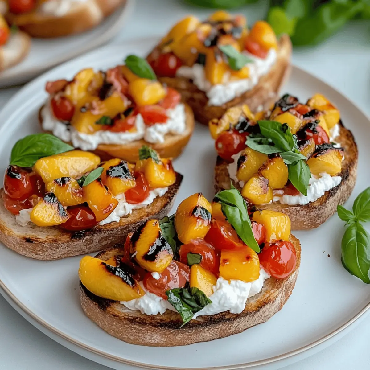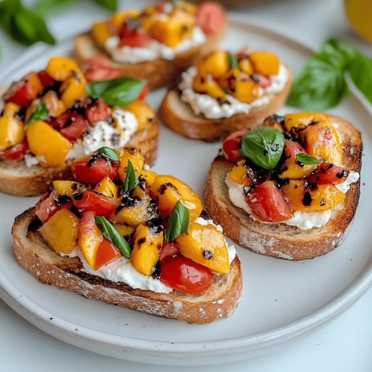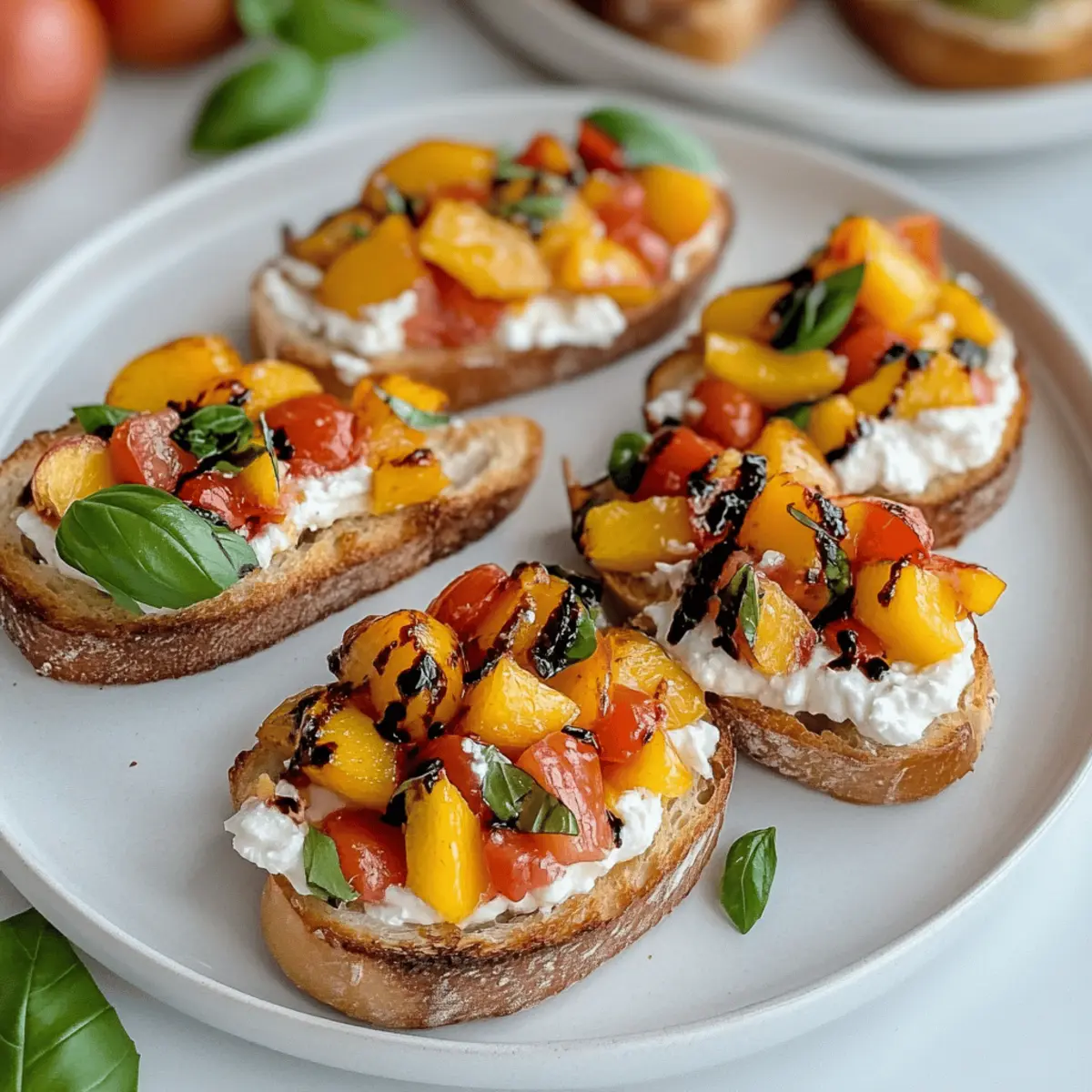 Once the baguette slices are perfectly toasted, spread a generous layer of the whipped ricotta on each slice. Top each piece with a spoonful of the peach and tomato mixture, allowing the colors and textures to shine through. This construction is what makes your Quick Peach Bruschetta with Whipped Ricotta a visual delight.