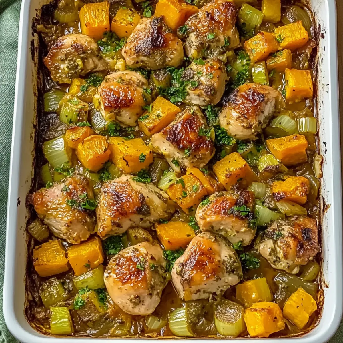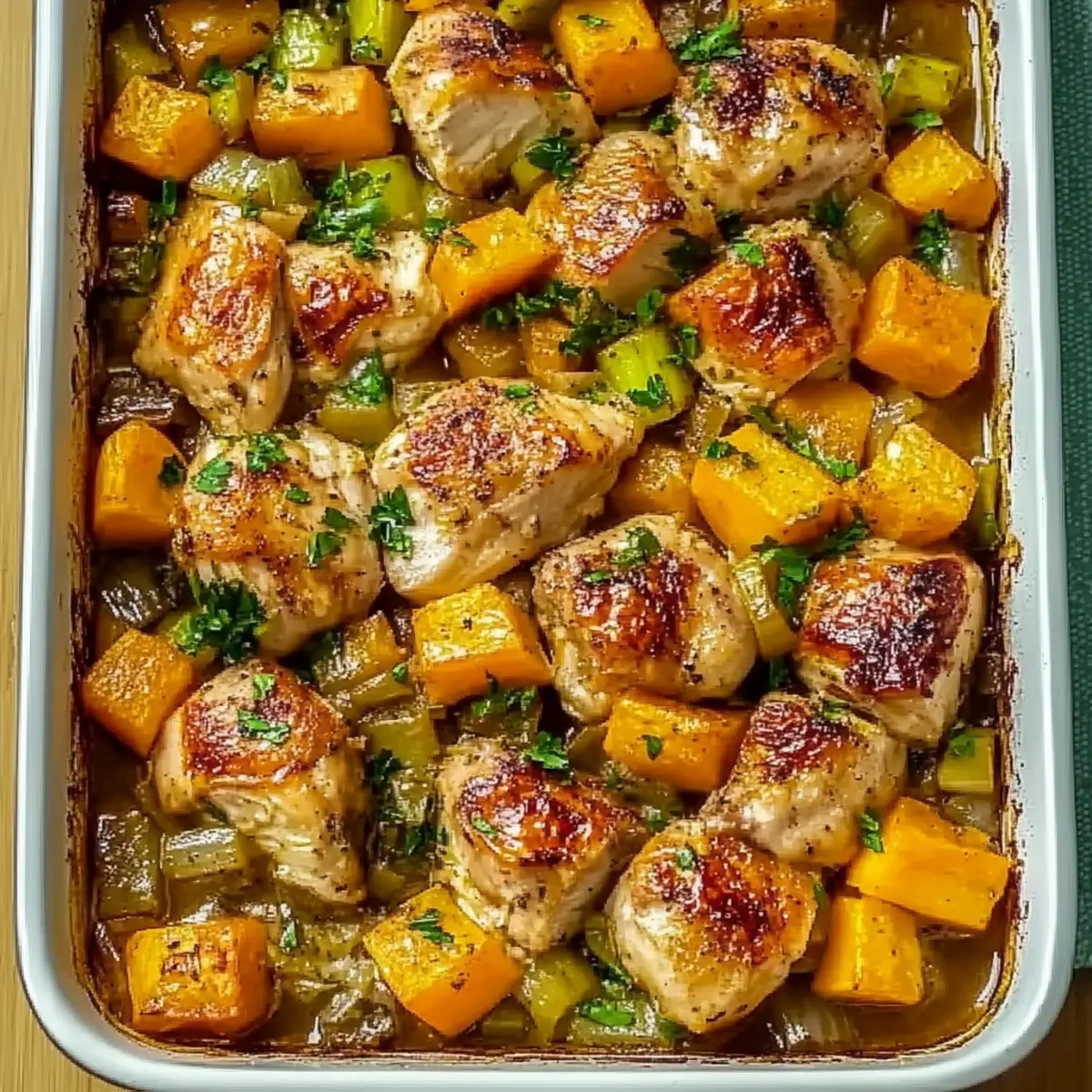 Hearty Roasted Chicken Leek and Butternut Squash Bake Delight