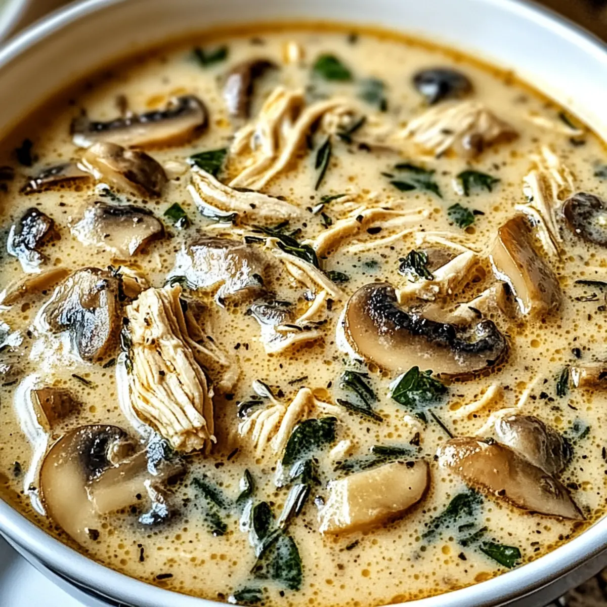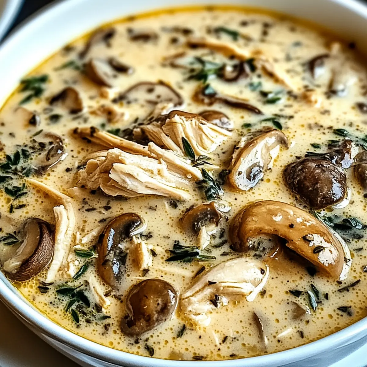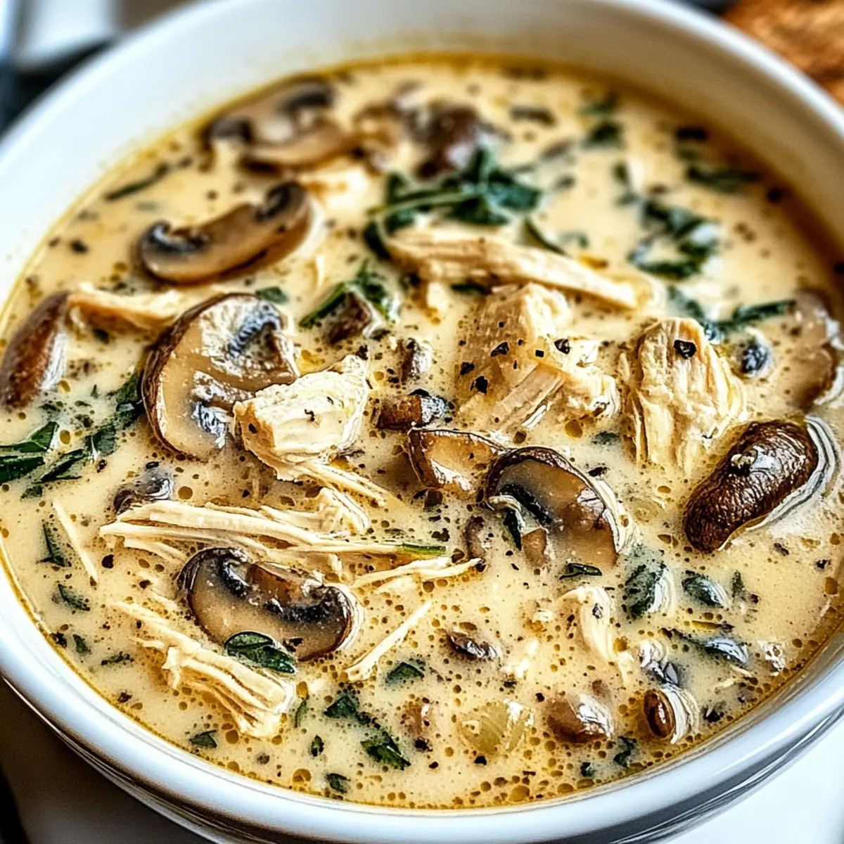 These Rotisserie Chicken Mushroom Soup options are perfect for busy home cooks looking to save time without sacrificing flavor! You can prepare the base, including sautéing the onions, garlic, and mushrooms, and refrigerate it for up to 24 hours. Just make sure to let it cool before sealing it in an airtight container to maintain the fresh flavors. When you’re ready to enjoy your comforting soup, simply add the broth and shredded rotisserie chicken to the prepped mixture, incorporate the cream, and simmer until heated through. This way, you cut your cooking time drastically while still enjoying a delicious bowl of Rotisserie Chicken Mushroom Soup that warms the heart!