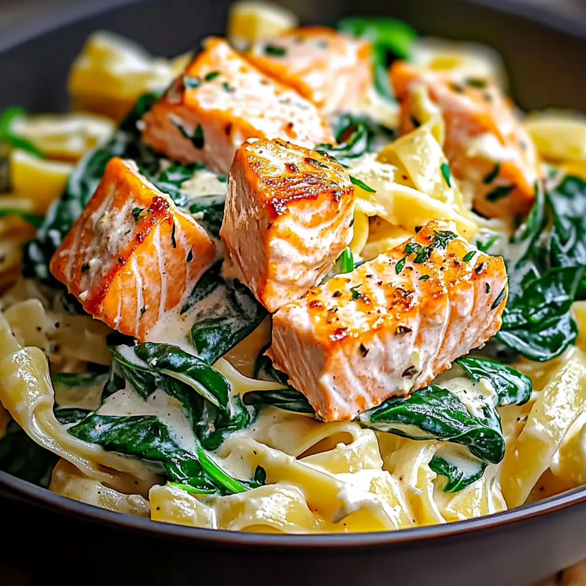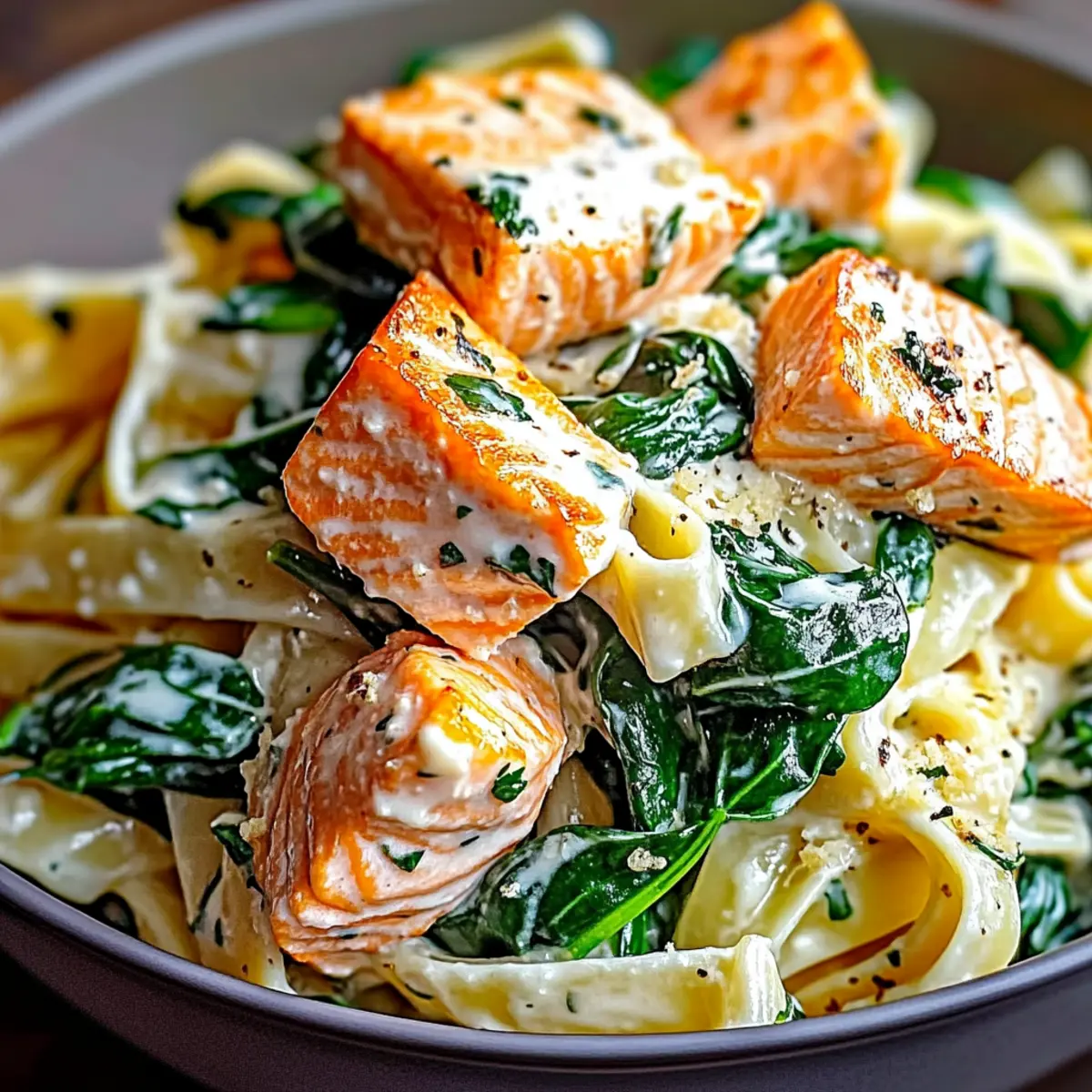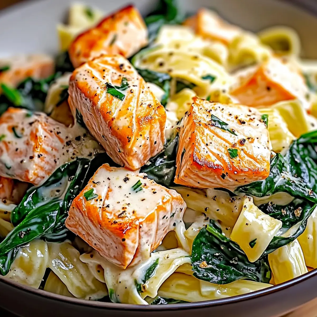 Experiment with Greens: Feel free to swap spinach with other greens like kale or Swiss chard for a different nutritional profile and flavor twist in your Salmon Spinach Pasta.