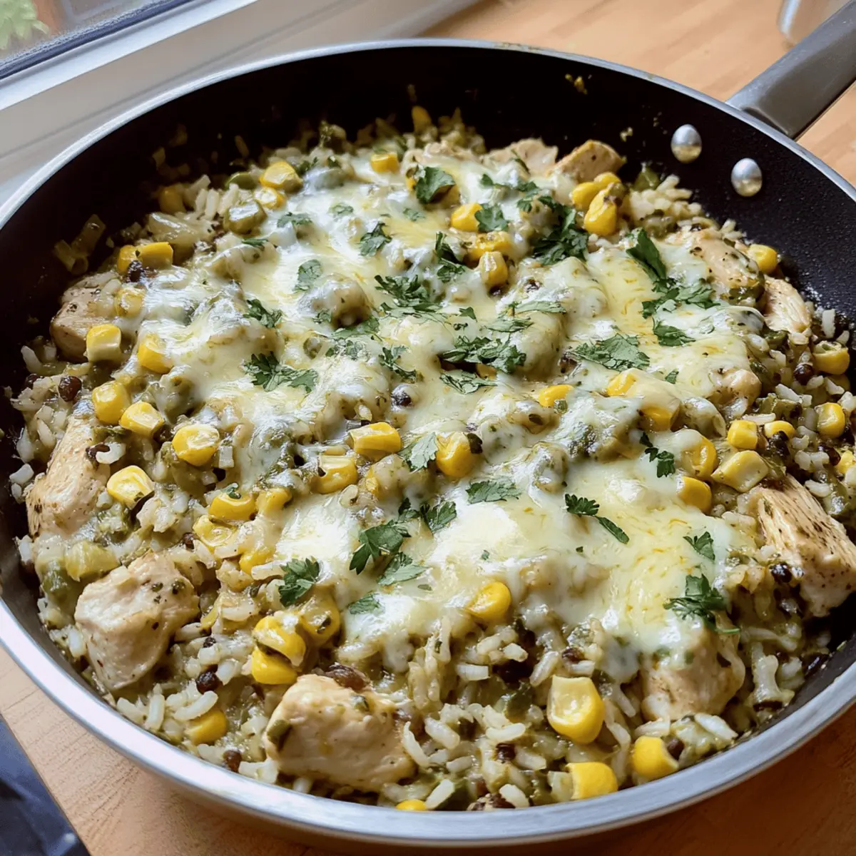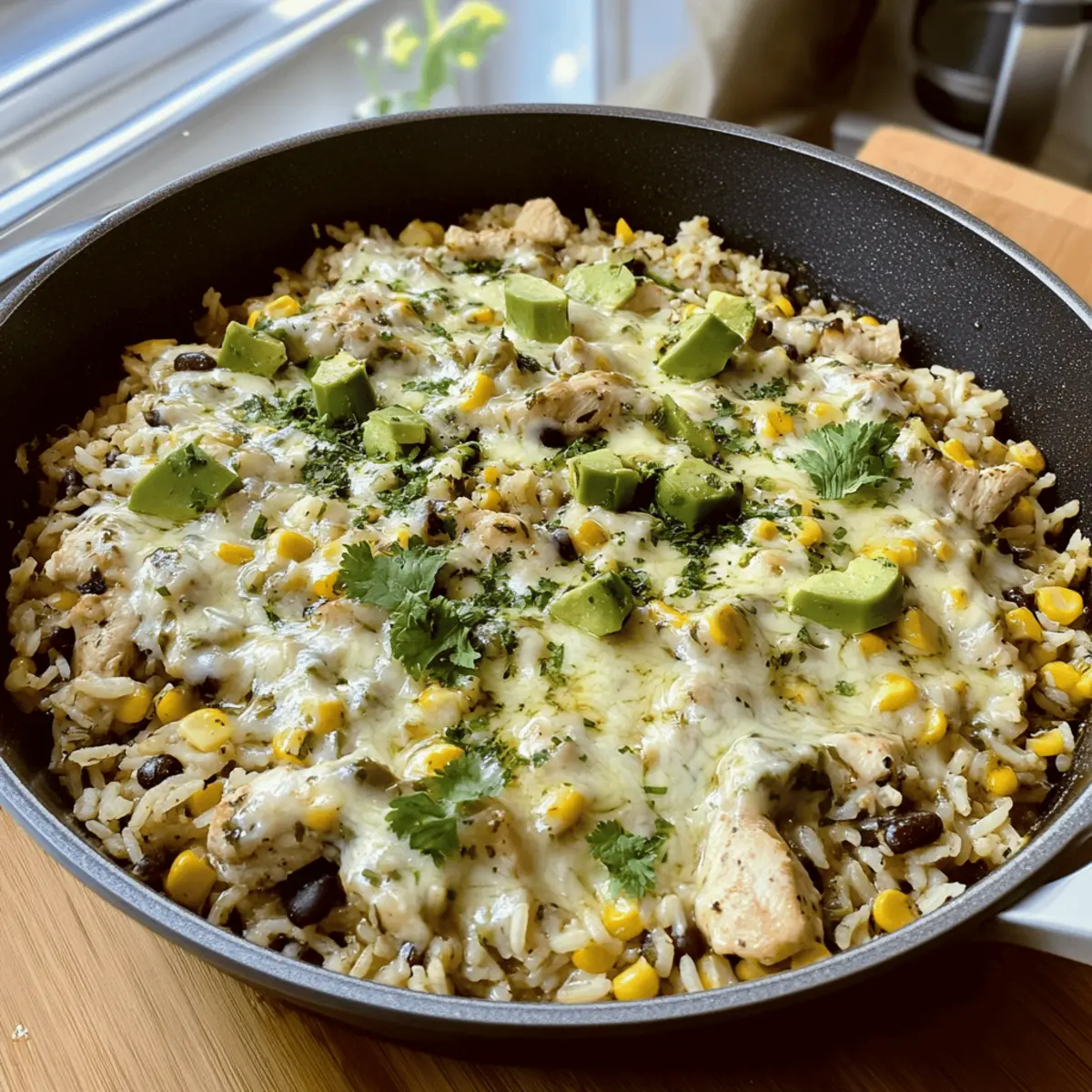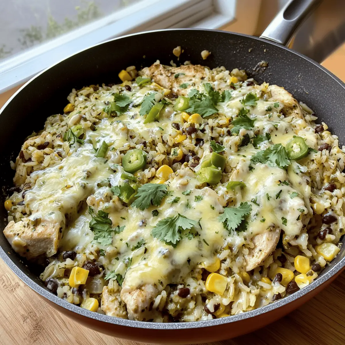One-Pan Simplicity: This Salsa Verde Chicken & Rice Skillet is all about ease, requiring minimal cleanup and effort.