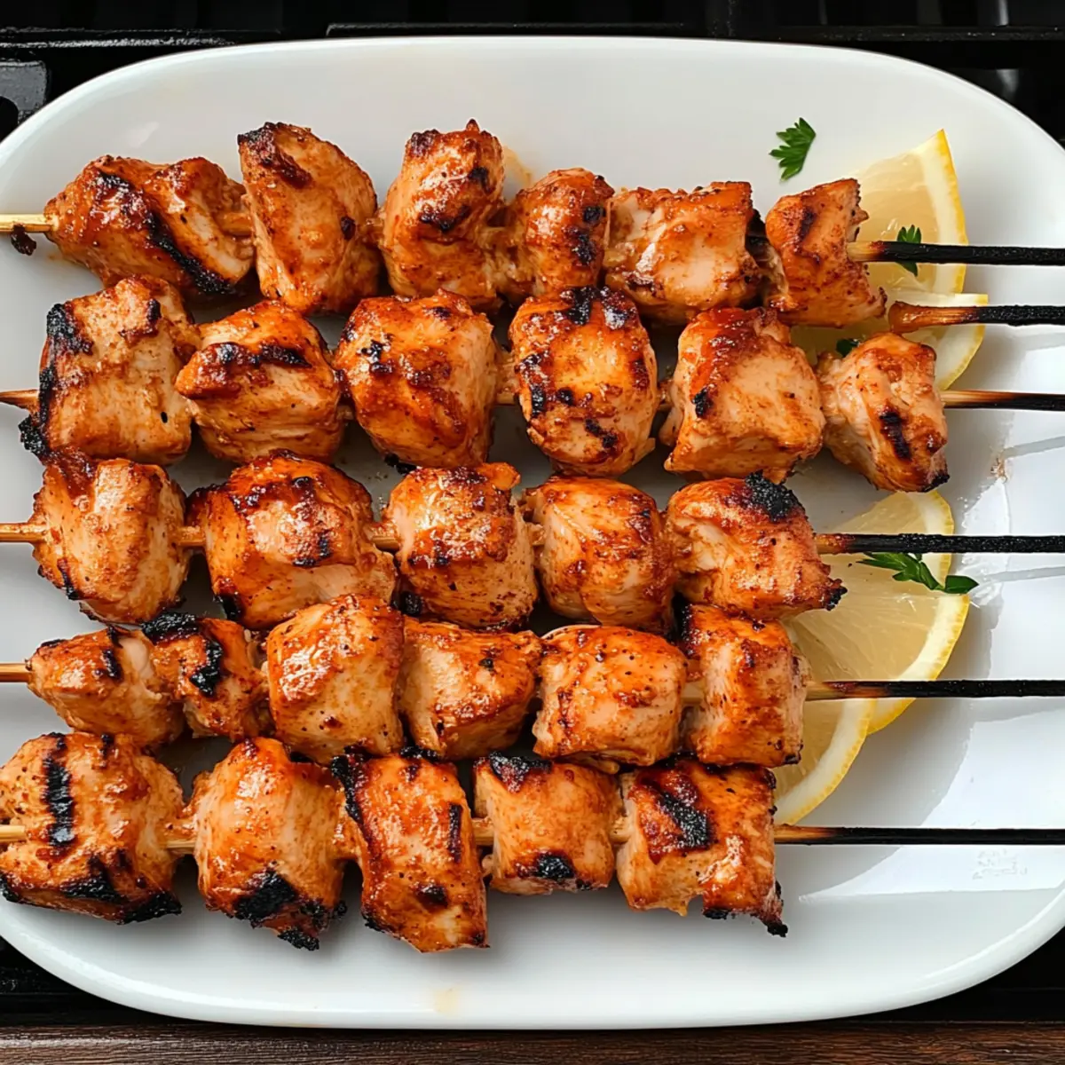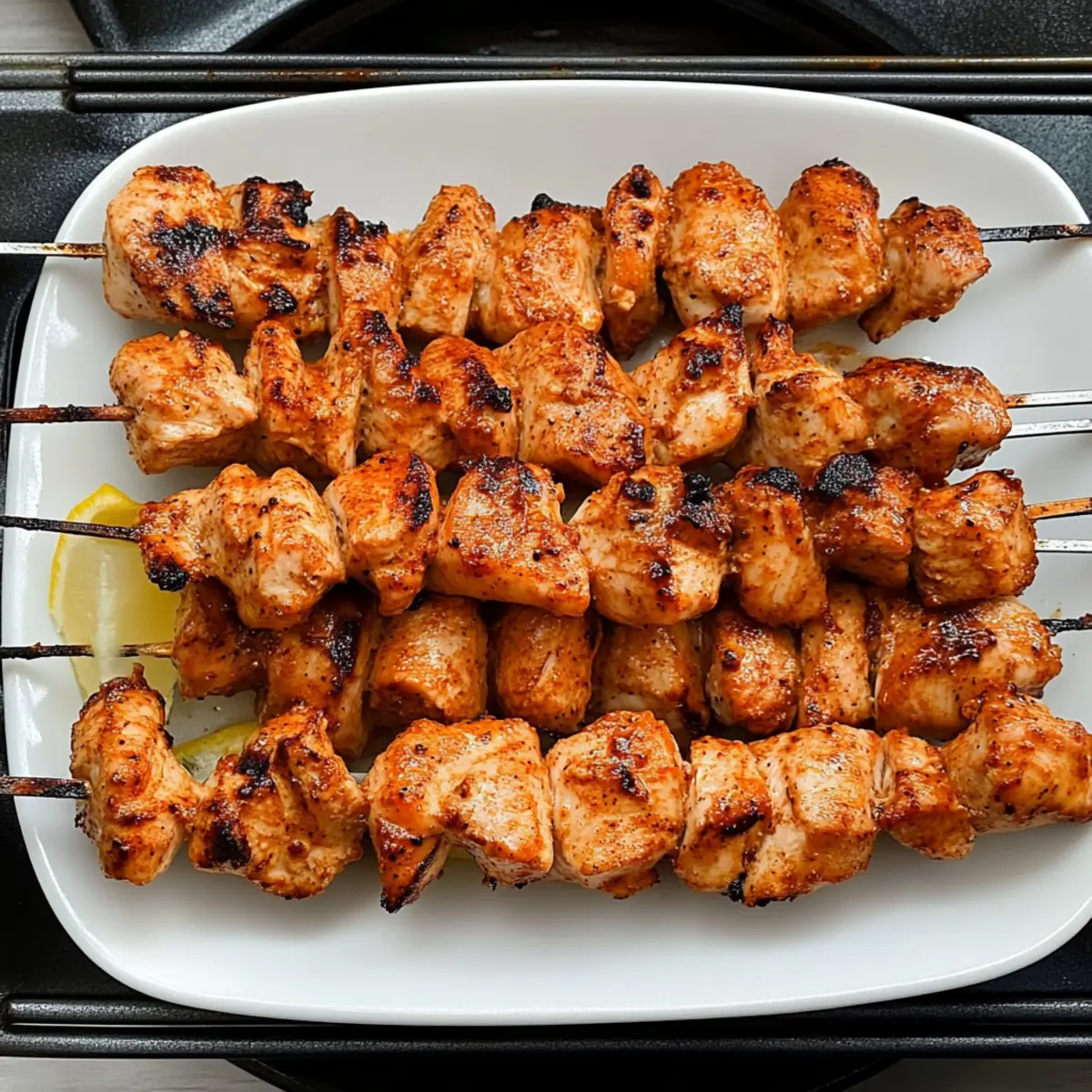 - Grill Chicken: Preheat your grill to medium heat (about 350°F/175°C). Place the skewers on the grill and cook each side for approximately 5 minutes, ensuring the internal temperature reaches 165°F (75°C).
