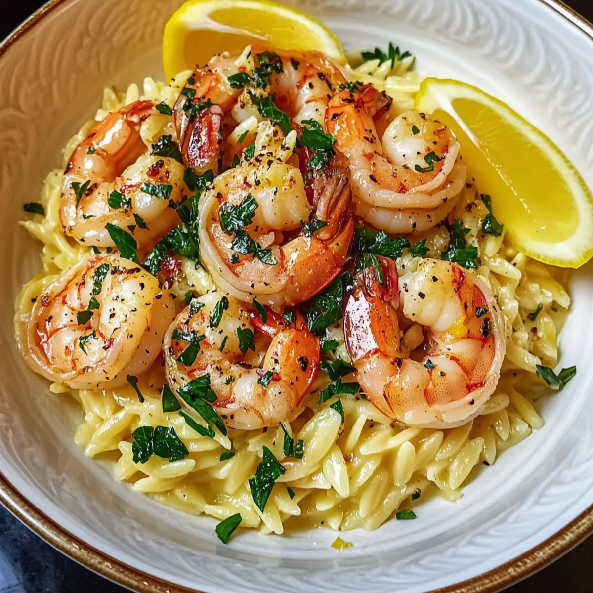 Flavor Explosion: Bright lemon and aromatic garlic come together to create a sauce that elevates the sweet shrimp and tender orzo, making each bite unforgettable.