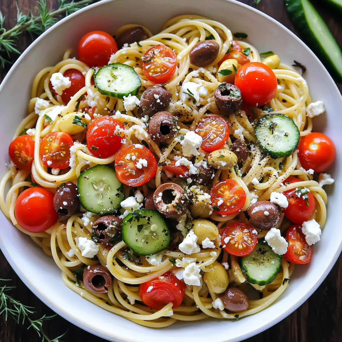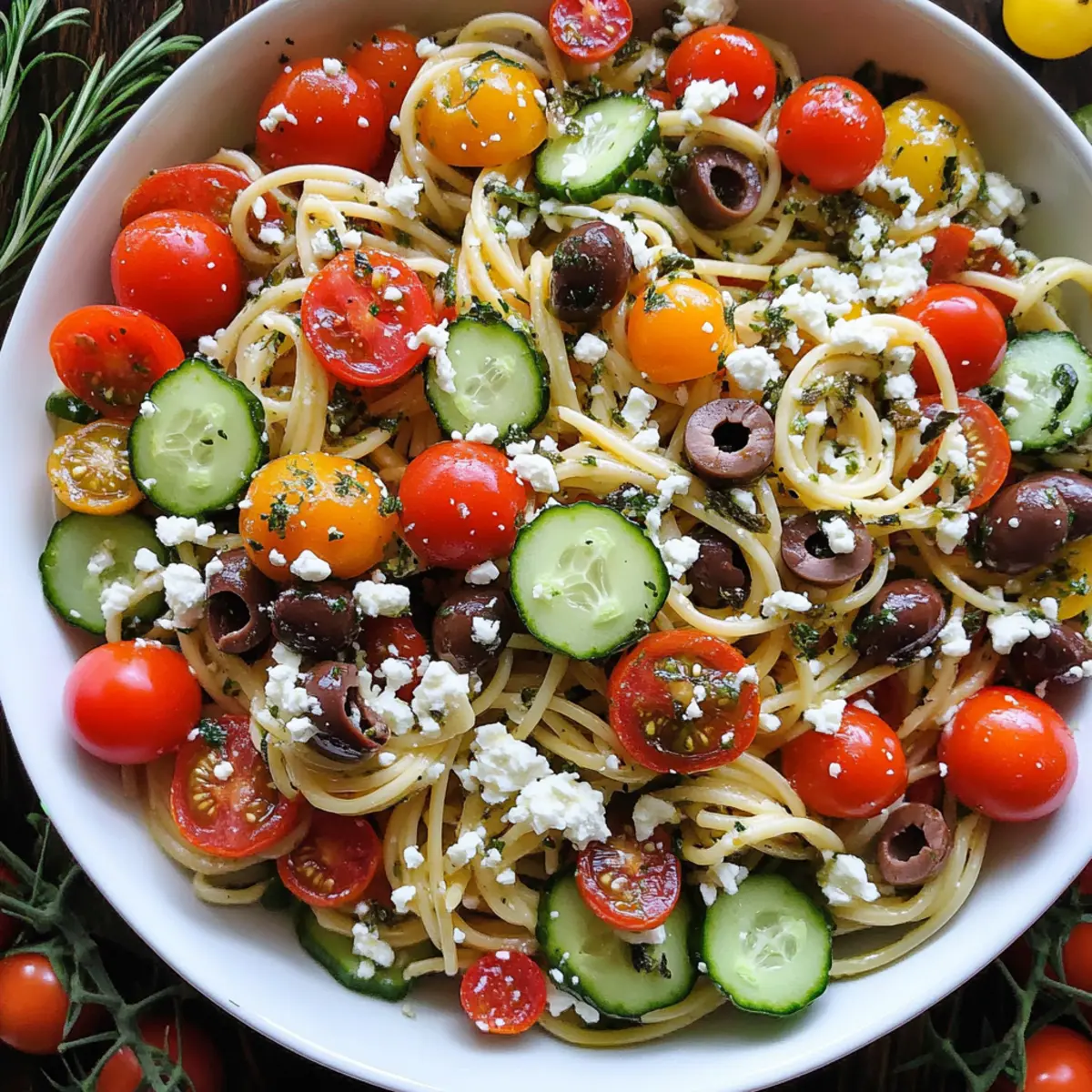 Summer is here, and there’s nothing quite like a refreshing bowl of Spaghetti Salad to brighten up your gatherings. This vibrant and colorful cold pasta dish brings together sweet cherry tomatoes, crunchy cucumbers, and tangy feta cheese in just 20 minutes, making it the ultimate make-ahead vegetarian delight. Not only is it perfect as a meatless main or side at picnics and potlucks, but it also offers a chance to showcase the season’s freshest ingredients. Plus, the leftovers can easily be enjoyed for days, saving you time in the kitchen and tantalizing your taste buds. Ready to whip up a dish that’s sure to impress? Let’s get started on this sweet and savory ride!