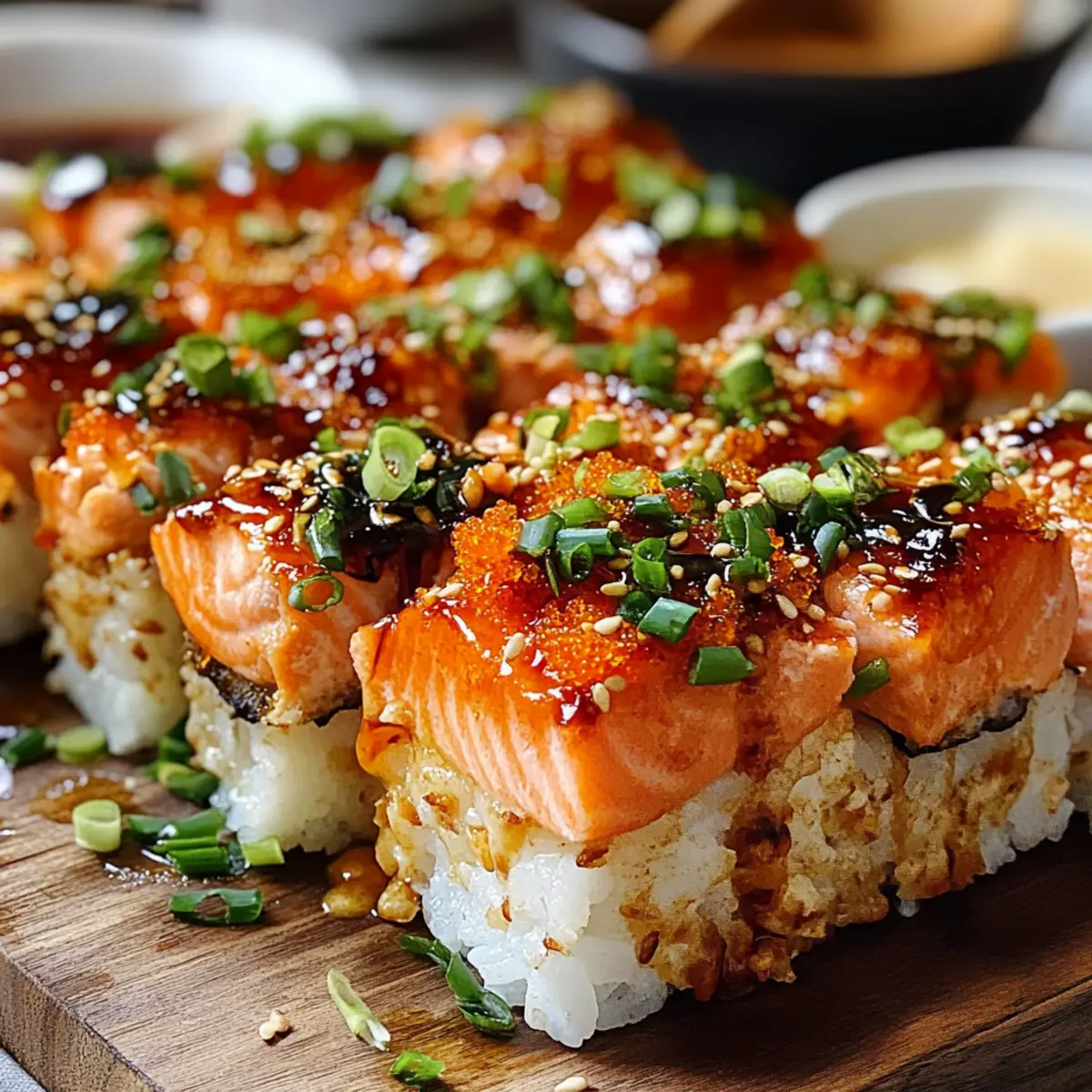 Simplicity, this recipe transforms complex sushi into an easy-to-make dish perfect for busy families. Customizable Spice Level, you can adjust the sriracha to suit your preferences, ensuring everyone can enjoy it just as they like. Crowd-Pleasing Flavor, the creamy topping and tender salmon create a rich and satisfying experience that will have everyone coming back for seconds. Versatile Ingredients, feel free to swap out salmon for crab or shrimp, making it adaptable for different tastes. Plus, Quick Preparation, it’s ready to bake in under an hour, making it an excellent choice for weeknight dinners or casual gatherings.