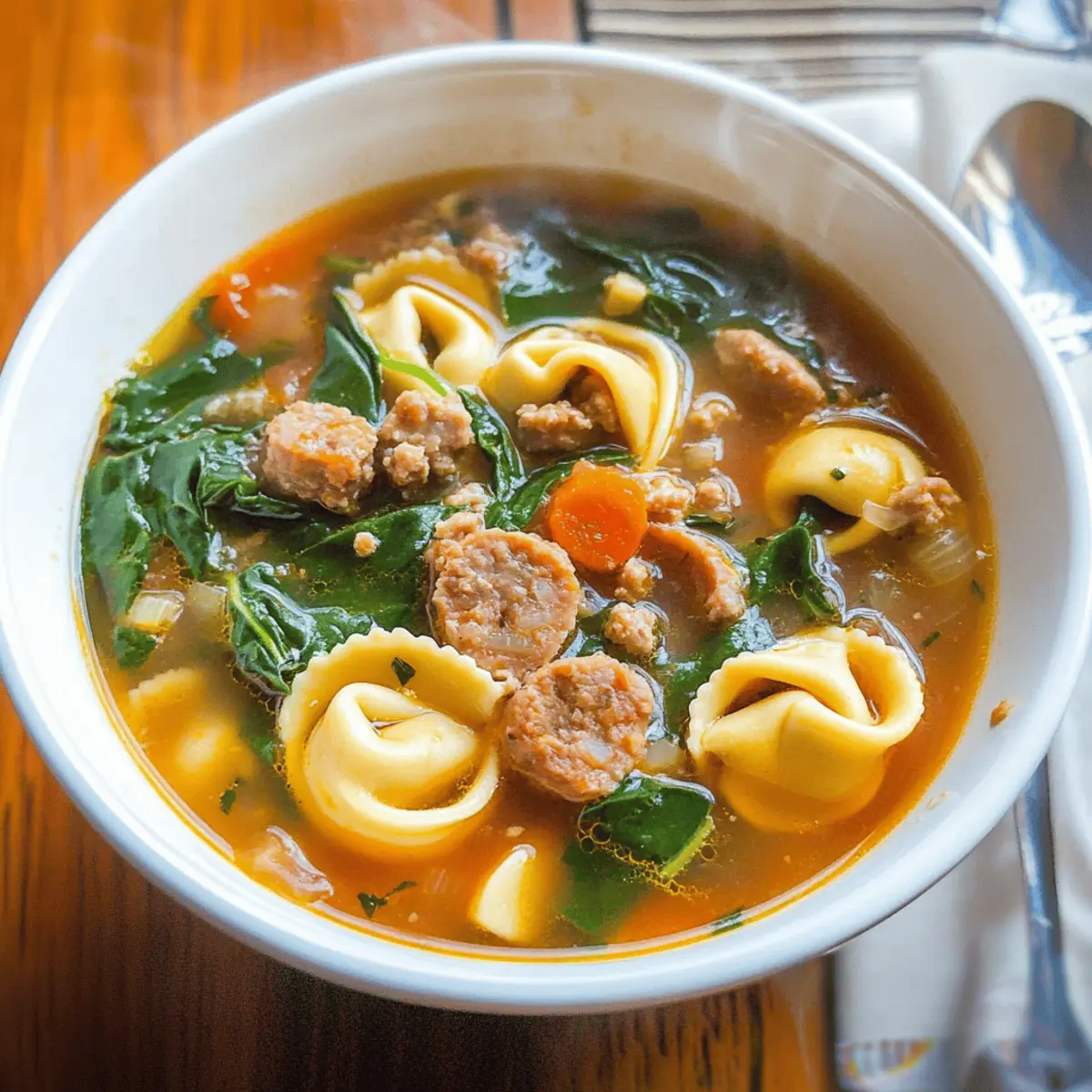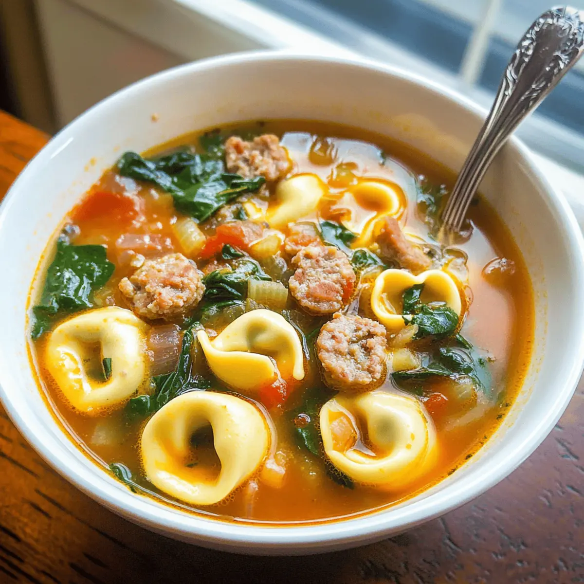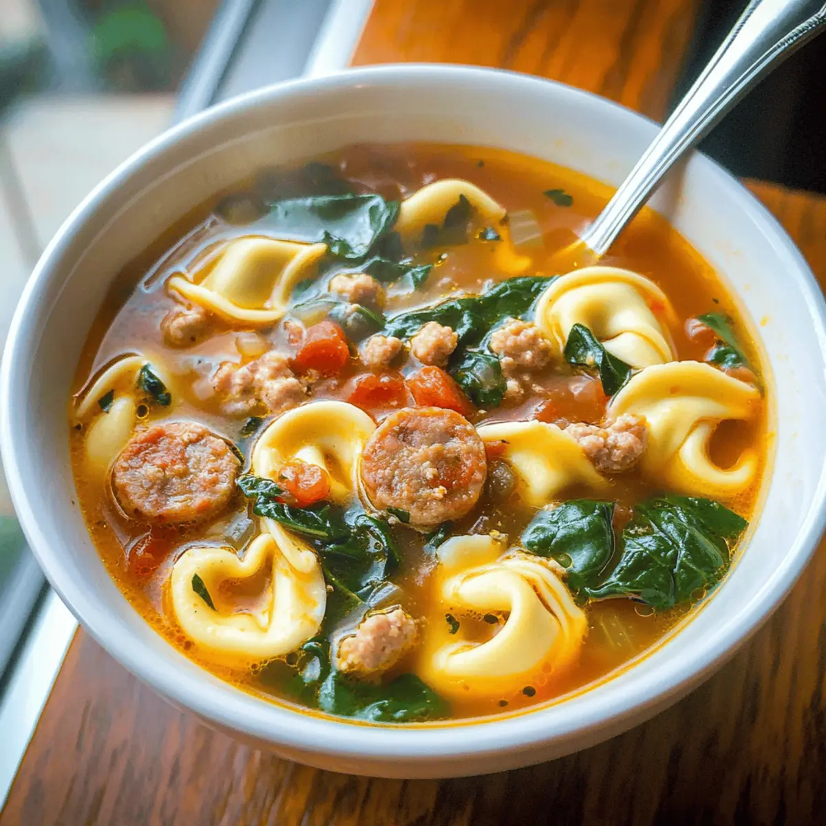 Hearty Spinach and Tortellini Soup with Sausage Delight